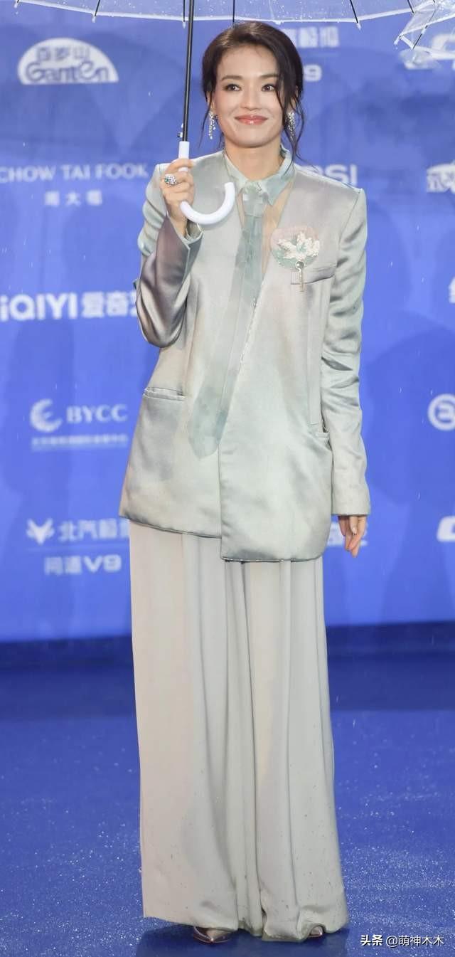 四捨五入,舒淇都快年過半百了,她沒有選擇裙子,而是穿了一身新中式套裝現身紅毯,只是不知道是不是因爲下雨導致褲腳溼了,加上有些暈妝,舒淇面對鏡頭顯出侷促——姐姐別緊張,狀態挺好的!
