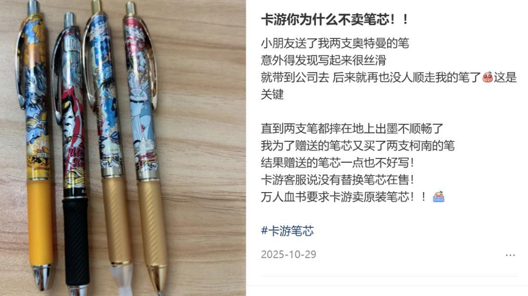 晨光賣的IP聯名筆,卡遊也能賣,且IP運作更快、轉化更強,質量口碑也不輸專業文具廠商,甚至有人專門去找卡遊的冷門IP筆囤貨。這說明如今製造本身的門檻沒有那麼高了,真正值錢的是IP組織能力、內容運營能力和消費轉化能力。
