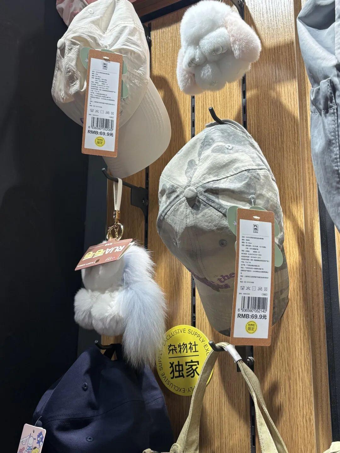 但如今走進門店,她覺得黃色的“獨家”標籤明顯變少了。“帽子揹包這邊還有一些(獨家產品),但毛絨貨架大多都是沒怎麼見過的工廠產品。還有很多盲盒,其實在伶俐、綠光都有同款。我偶爾還會來這裏看看包,但現在的平價潮牌也有很多,我不一定要在這裏買。”