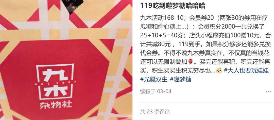 潮玩進入雜物社之後,雜物社的會員結構逐漸被拉往另一個方向,從“喜歡晨光設計的人”變成了“想要低價買潮玩的人”。面對名創、KKV等新零售物種快速拓品上新的競爭壓力,會員券在某種程度上成爲了雜物社在潮玩大戰中變相進行價格戰的手段。