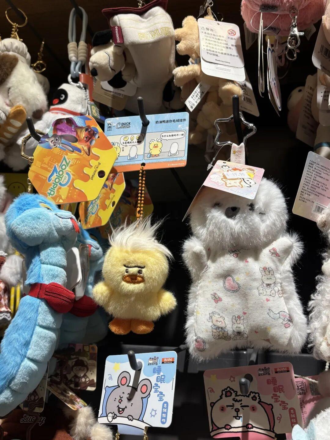 剁椒在北京三環的某家雜物社門店看到的景象印證了她的第一感覺:近10排毛絨貨架上,只有“雜物社×奶油鴨”一款獨家產品。雖然有大鼠、PINGU、瘋狂動物城2等其他當紅IP,但貨架上的款式在其他渠道也能夠看到。