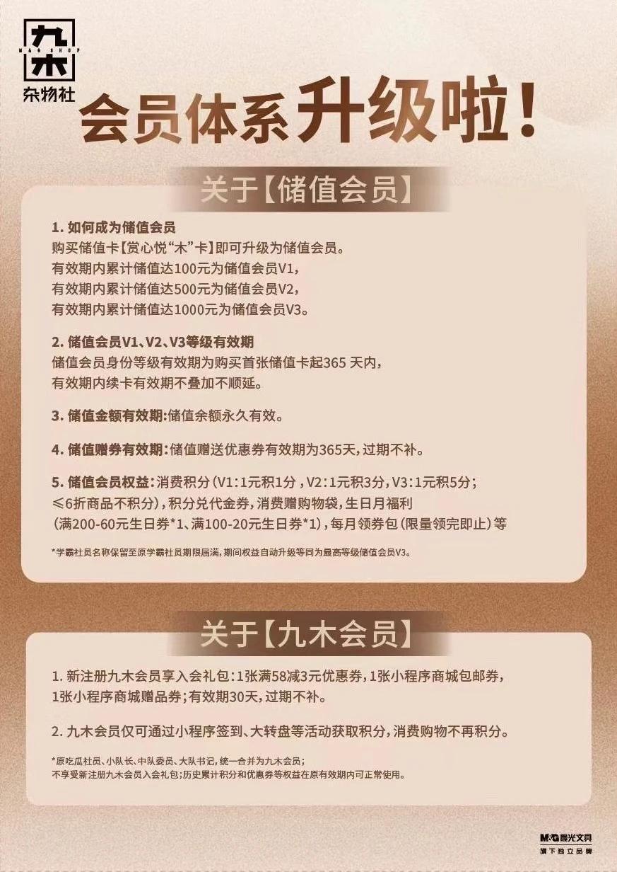 但她擔心的尷尬沒有發生。四月的第一個週末,全國的雜物社裏不再有店員提起開卡的事:4月1日,九木雜物社宣佈全面調整會員體系。原有的88元年卡,即“學霸社員權益”被取消,改爲免費會員和儲值積分會員。