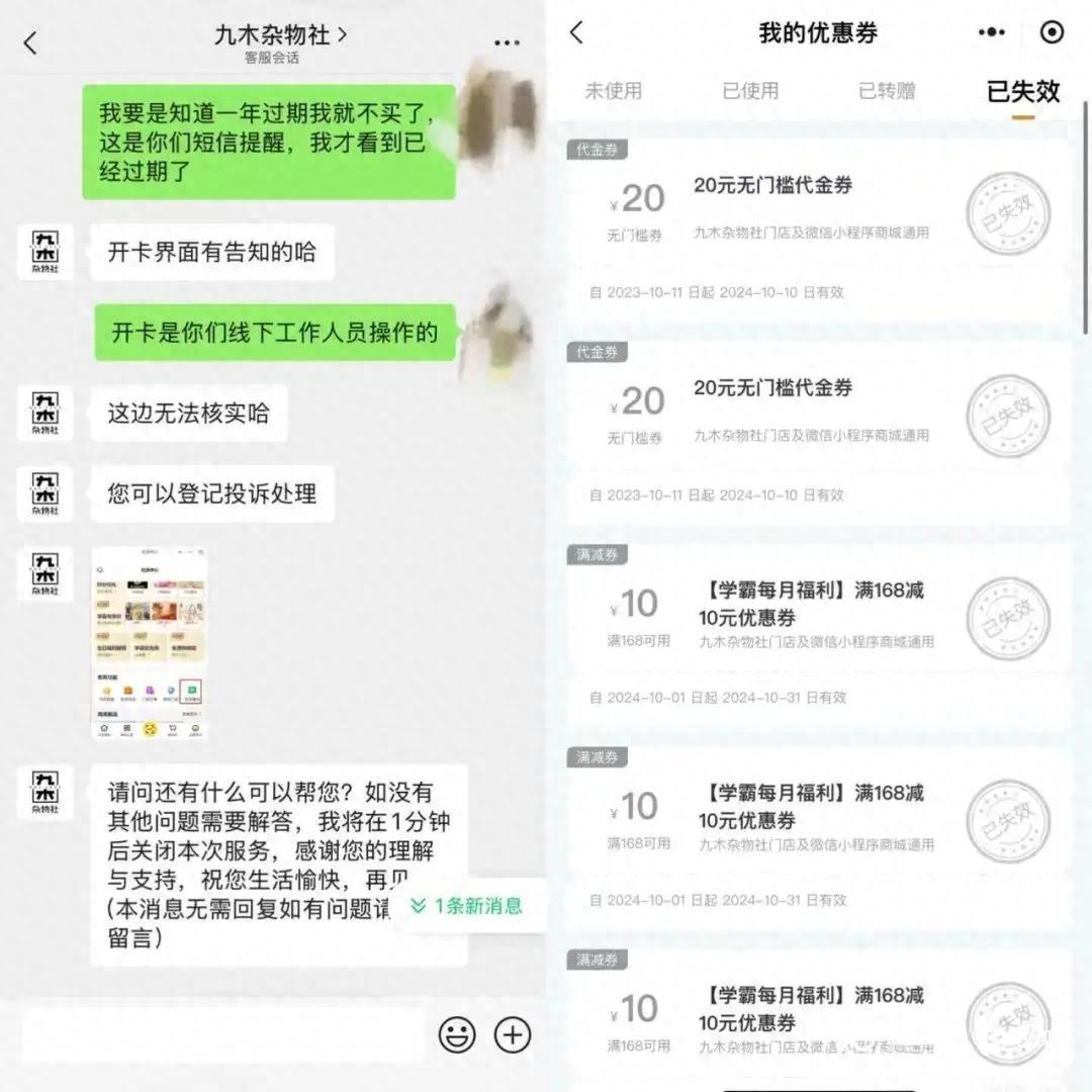 前年,她在雜物社“拿了一個水杯,店員說開卡可以免單,就稀裏糊塗地開了他們的88元學霸卡”。事後一算賬,所謂的“免單”指的是開卡之後獲得的優惠券額度相當於那個水杯的價格,但那是數張需要分次使用的滿減券。爲了實現“免單”,她還得去額外消費幾次。去年,在另一家門店,工作人員再次用似曾相識的話術要求她續費年卡。