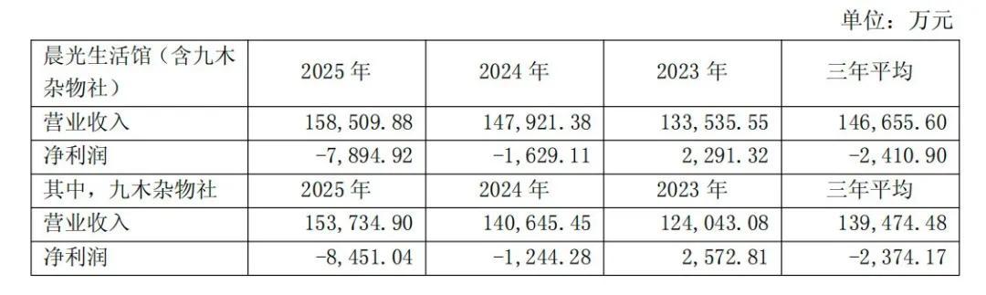 就在上個月,雜物社的母公司晨光集團交出了2025年的成績單。公司營業收入同比增長3.45%,經調整淨利潤卻下降8.92%。其中,被寄予厚望的九木雜物社虧損接近八千萬元:接近前一年虧損的4.8倍。