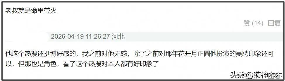 要說內娛有個明星,在沒新作品和新活動的情況下,短短數日粉絲漲幅超200萬,那都得懷疑是不是又有瓜了?但如果是最近的何潤東,那就好理解了,2026內娛“隔空掀桌”的猛將,目前粉絲數都破600萬了,還在持續上漲。