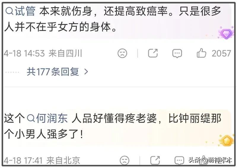 不少網友也試圖深扒何潤東,結果反倒是他不想讓老婆接受傷害性醫療干預生娃上了熱搜,正巧前段時間鍾麗緹老公想讓55歲鍾麗緹再生娃的話題引起網友熱議,這麼一對比,何潤東又引來一陣好評。