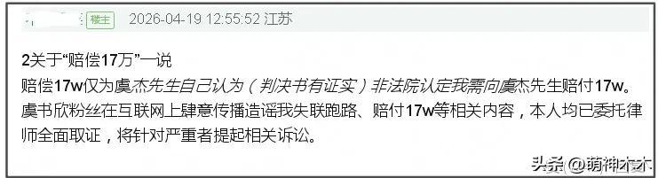 被告人表示大量虞書欣粉絲參與且傳播“失聯跑路且賠償17萬”的謠言,目前她已經委託律師取證,針對造謠嚴重者提起訴訟。