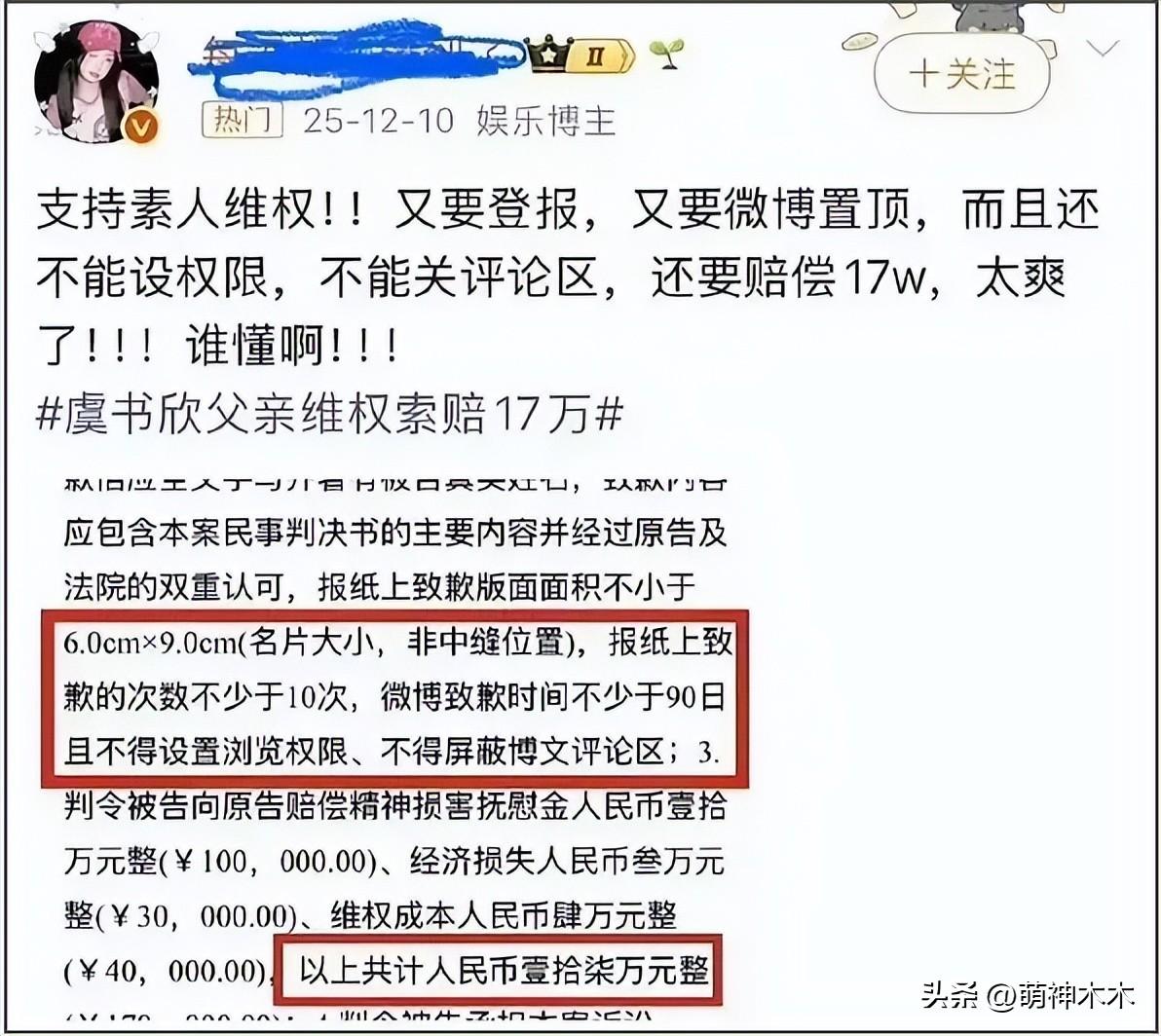 不少網友看到虞書欣父親敗訴,紛紛斥責行爲惡毒,專門欺負沒有經濟實力的未成年人,使用鉅額罰款等手段恐嚇勸退,不然爲何不敢起訴財經大V。在整個扒皮過程中,他們的資料蒐集能力碾壓未成年素人,造成的影響比未成年人素人高很多。如今虞書欣父親敗訴,還有不少粉絲禍水東引,試圖用趙露思粉絲的名義歪曲成粉圈恩怨,喫瓜網友都不傻,並沒有被轉移焦點。