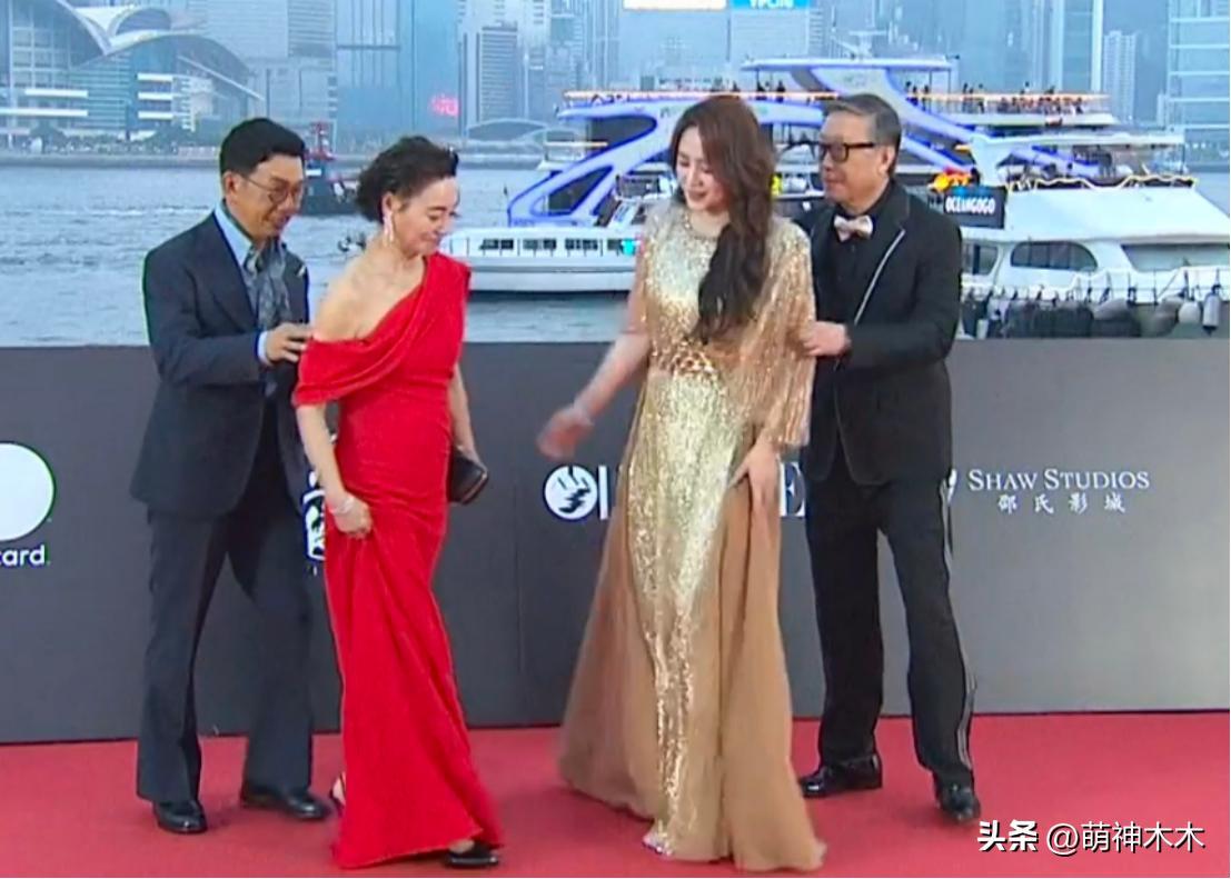提名了最佳女主角獎項的馬麗穿了一身金色禮服現身,她主演的電影《水餃皇后》拿下三個演員獎項提名,劇組氣氛和諧,在紅毯上互讓C位,讓兩個女士站到中間。