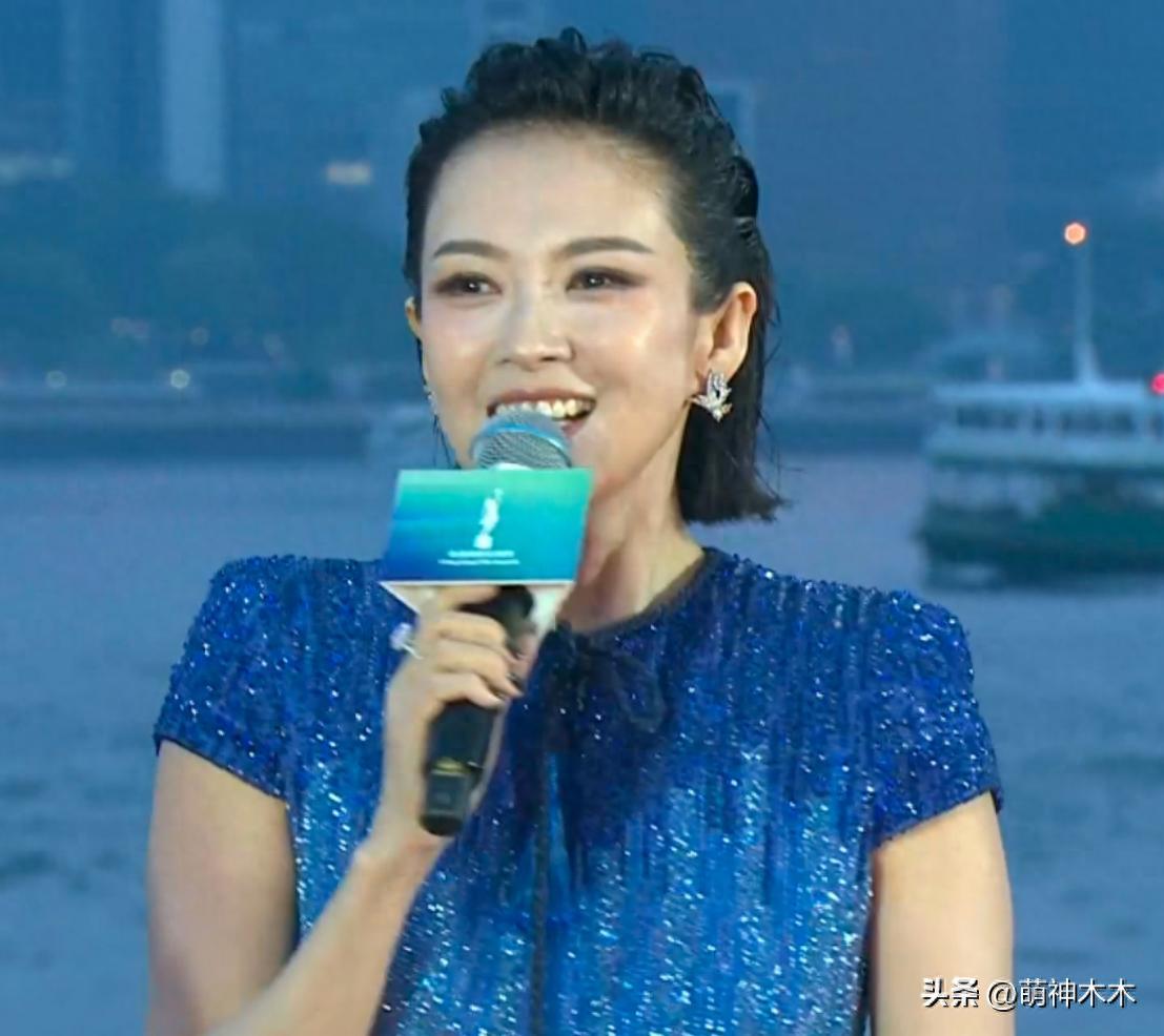 章子怡狀態恢復了不少,臉總算沒有太腫了,意外沒有選擇大禮服,穿了一身藍黑亮片套裝裙,整個人淡淡的,黑色短髮比大光明更適合她,似乎對三封影后沒有太大野心。