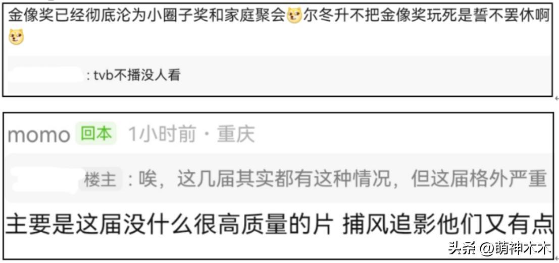 網友吐槽金像獎紅毯,不僅僅是因爲紅毯星光黯淡,更多是覺得整個獎項關注度越來越低,給人一種看不到未來的感覺。