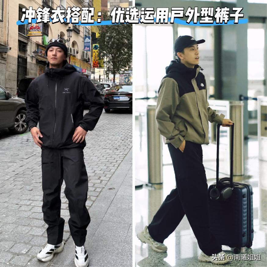 衝鋒衣這款單品,它本身就是屬於非常經典的戶外型穿搭,所以在應用起來的時候,我們也可以與其搭配比較寬鬆型的褲裝,也就是適適和戶外來進行運用的。例如像工裝褲或者是運動褲以及寬闊的牛仔褲,都是能夠和衝鋒衣完美組合起來的存在。
