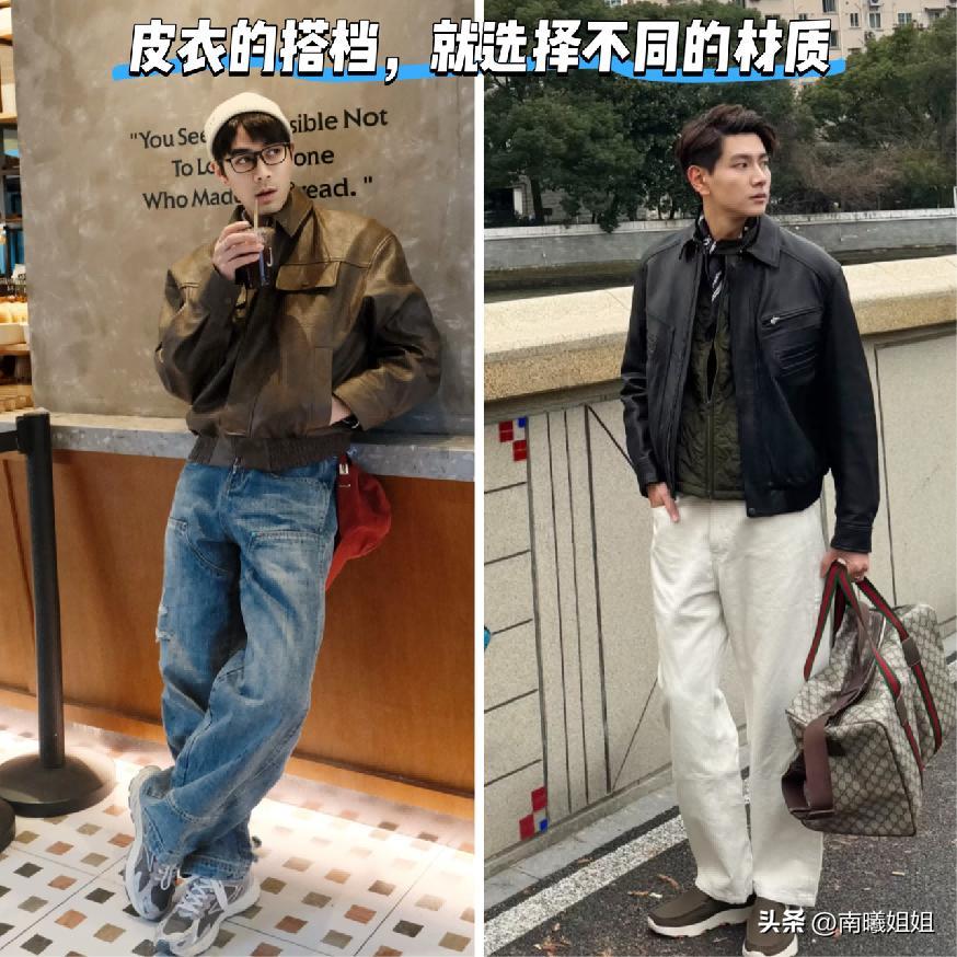 ➋ 搭配不同材質的褲子,不要“全身皮”