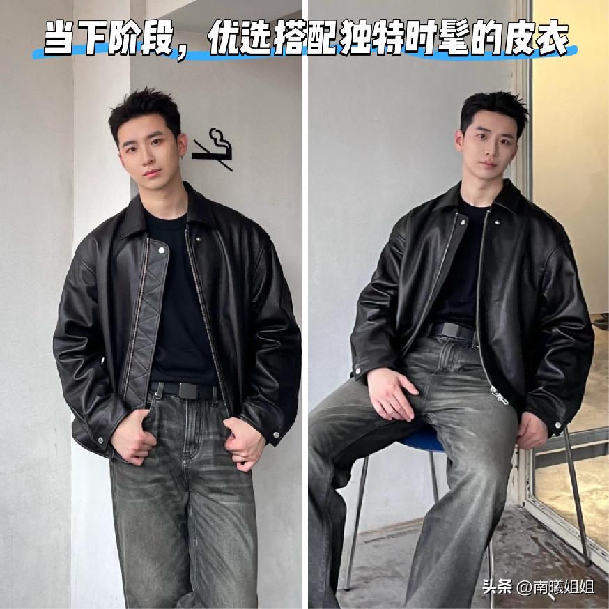 在搭配皮衣的時候,真的非常推薦各位男性可以看一下韓國男生他們是如何進行選擇運用組合的,呈現出來的時髦感以及又能夠將簡練利落的氣質襯托,同時也不失減齡的效果。