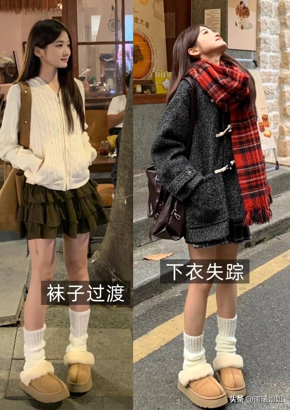 擁有一雙UGG雪地靴,就能盤活一整個衣櫥,拿出壓箱底的蛋糕短裙,搭配毛衣、衛衣,再裹上一件遮臀牛角扣大衣,玩轉“下衣失蹤”的穿搭,襯托的腿型更細。