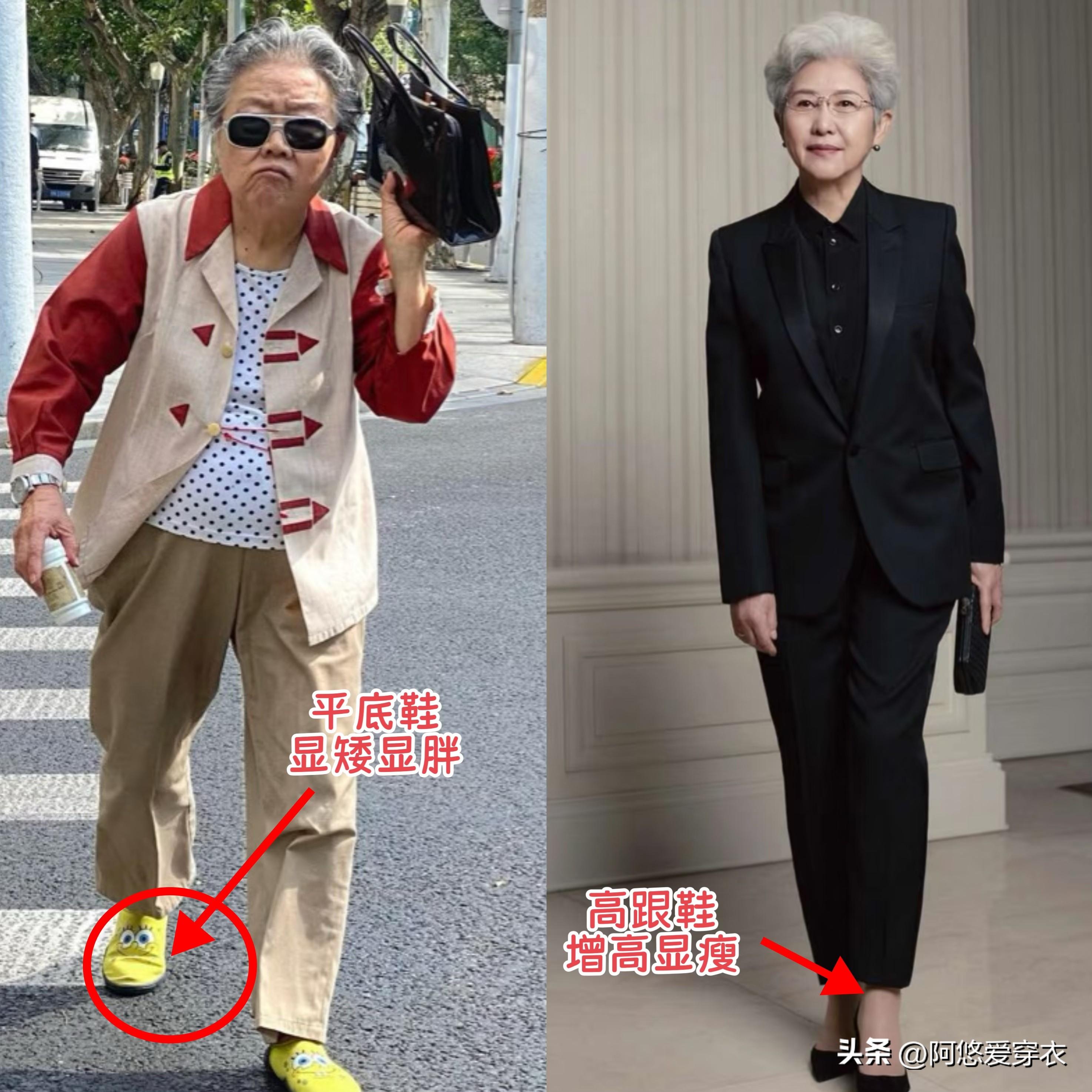 特別是很多老年人選擇的老年鞋,鞋底特別薄,款式也很老氣,穿起來瞬間就拉低了氣質,顯得身材又矮又胖。
