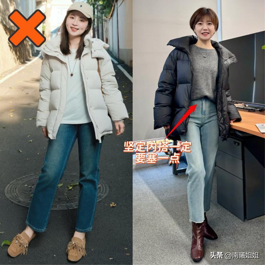若偏愛寬鬆上衣,無需糾結全塞或全不塞,只需將前側中間部分衣角塞進褲腰,兩側自然垂下,既能明確腰線,又能掩蓋腰腹贅肉,平衡上下身比例,避免顯矮顯臃腫,特別是秋冬的內搭一定要強調用賽衣法來顯高。