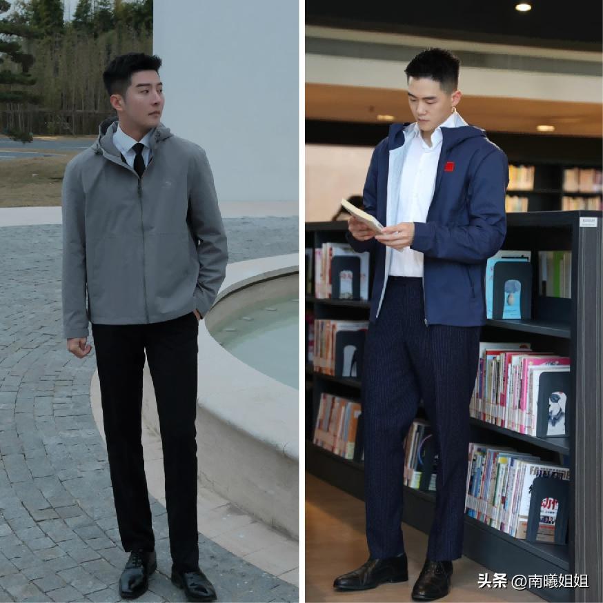 而對於各位男性來說,安踏品牌的衝鋒衣完全可以放心的運用於職場通勤當中代替西裝外套,因爲很多西裝外套它都不禦寒,所以如果我們搭配衝鋒衣的話,照樣可以實現出來又利落又簡練的穿搭風格,和西裝褲來進行完美的組合呈現。