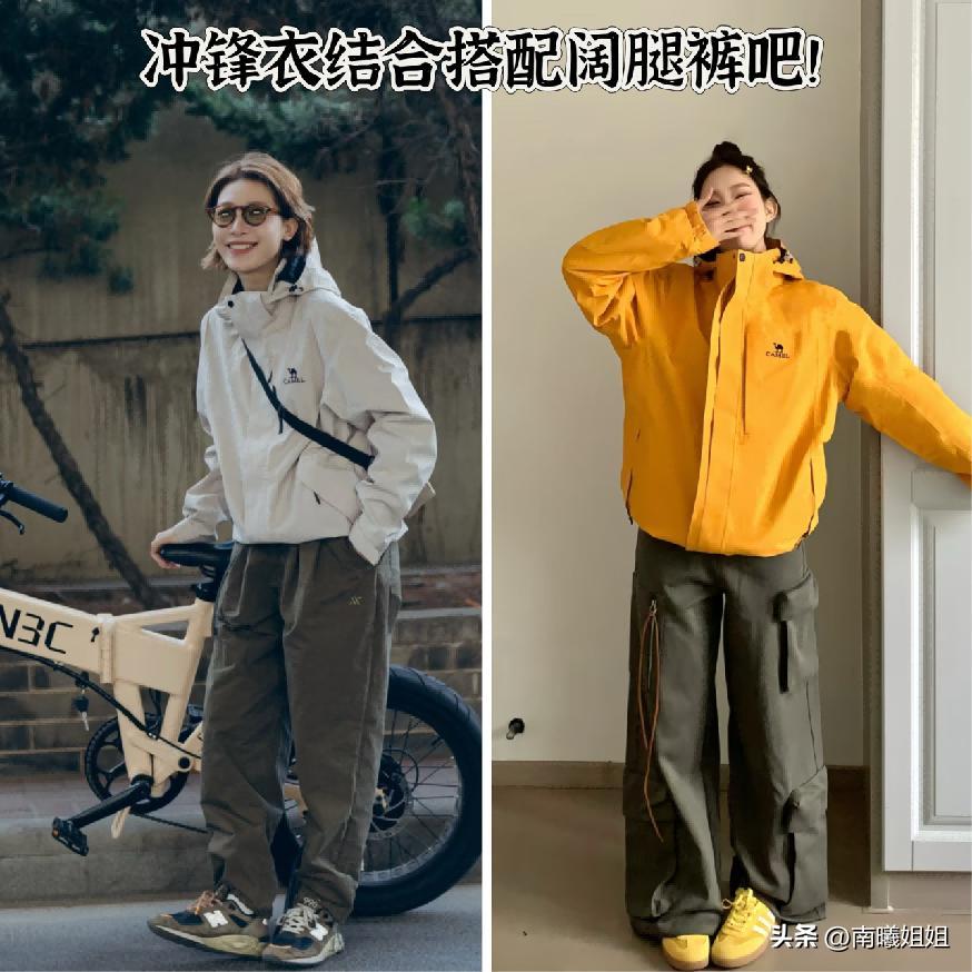 ➋ 衝鋒衣+闊腿褲,舒適又時尚的搭配