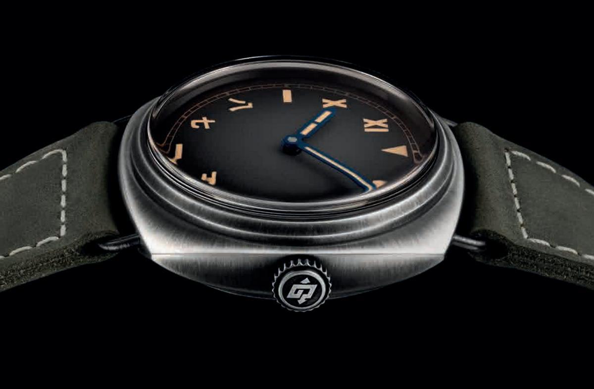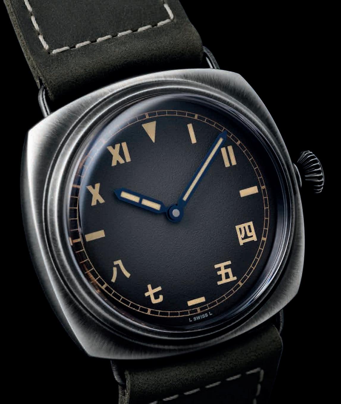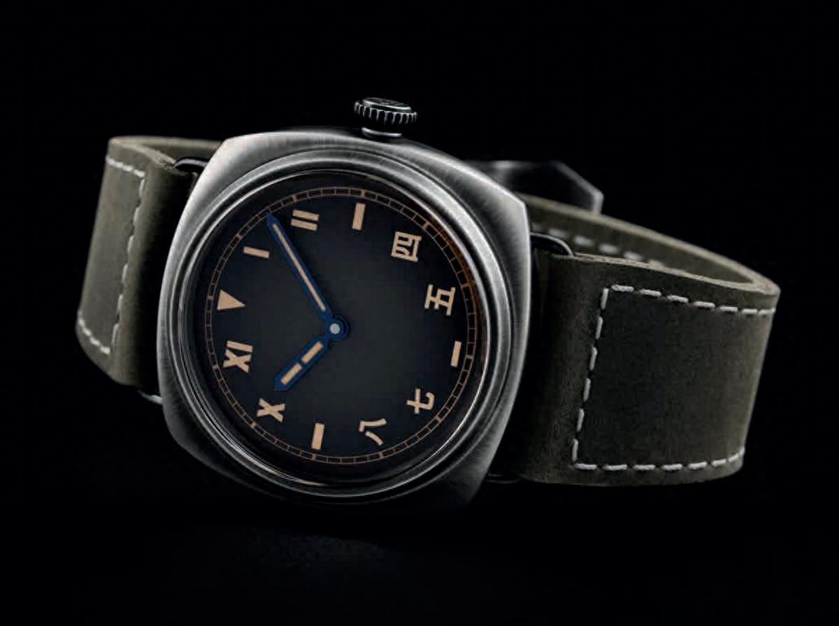 這款限量版腕錶採用45毫米枕形錶殼,以Brunito 1.4441 LVM精鋼材質打造,呈現獨特的復古磨舊質感。該工藝經由手工打磨完成,工匠以刷磨方式部分去除黑色PVD塗層,賦予每一枚錶殼獨一無二的外觀。纖細的流線型表耳與圓錐形錶冠進一步強化復古魅力,設計靈感來源於沛納海1935年的歷史錶款,成爲Radiomir鐳得米爾系列獨具辨識度的設計元素。