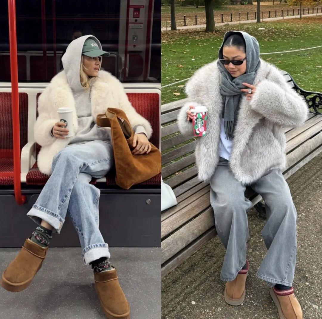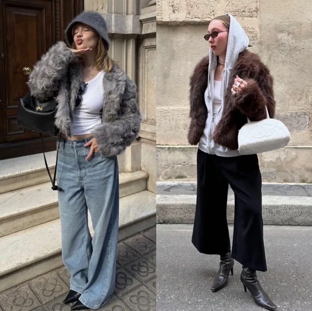 在短款皮草的搭配上,眼下最常見的組合就是內穿隨意的運動風。同色系套裝可以與帽子無限疊加,腳踩高跟、皮鞋、ugg又或是運動鞋都能生成不同的冬日風味,但不變的核心是那種“說走就走”的隨意感。