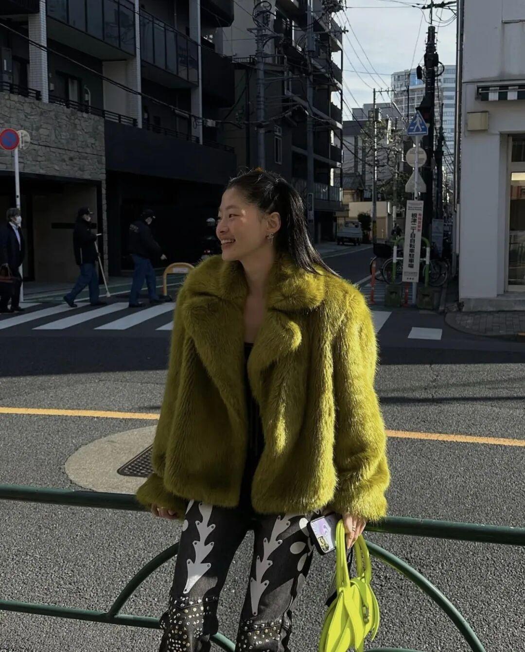 搭配方式也不復雜——讓毛絨成爲造型焦點,其他部分越簡單越有張力。比如一件亮紫毛絨外套配全黑內搭,就是屬於時髦人的冬季信號。