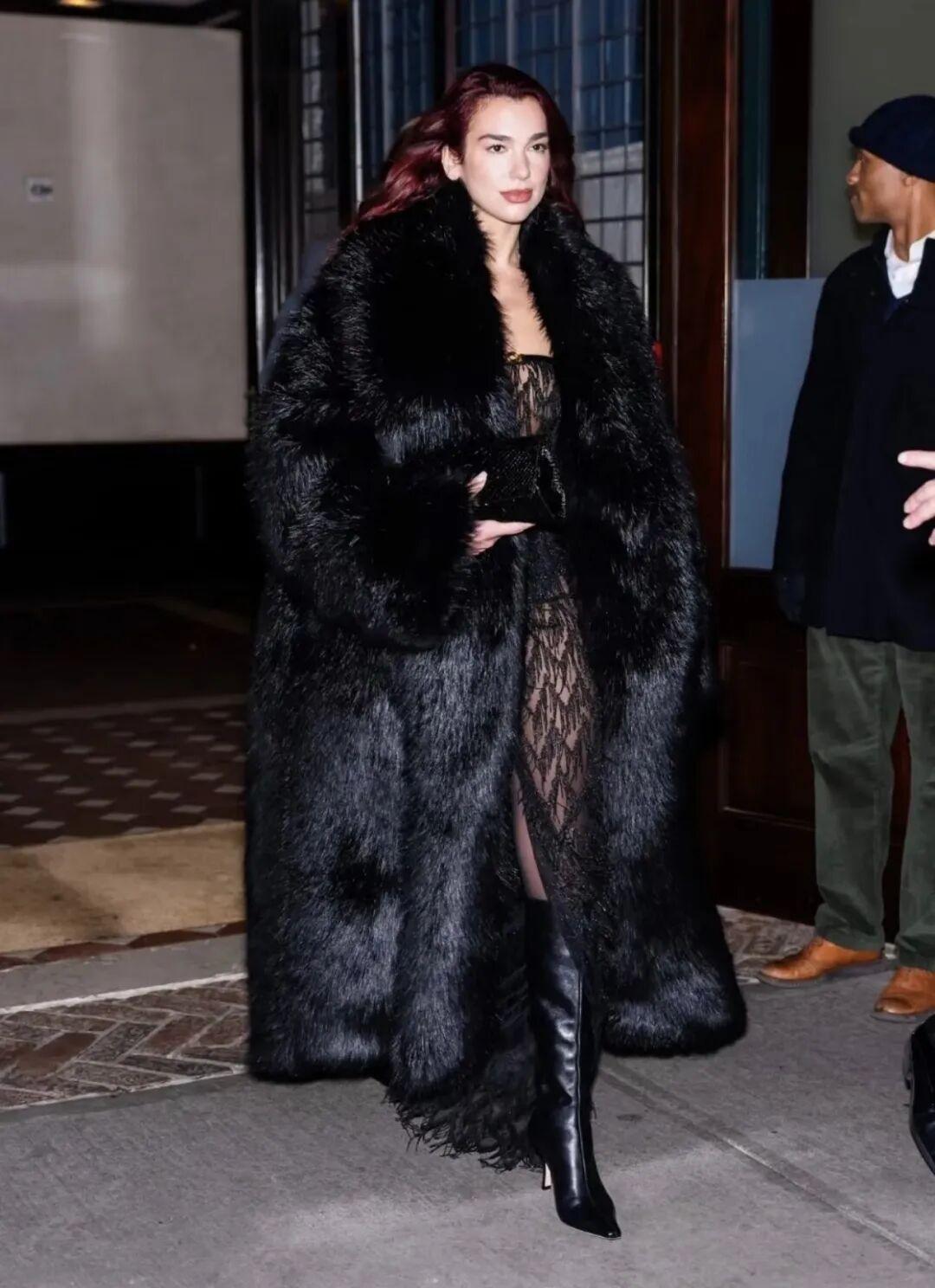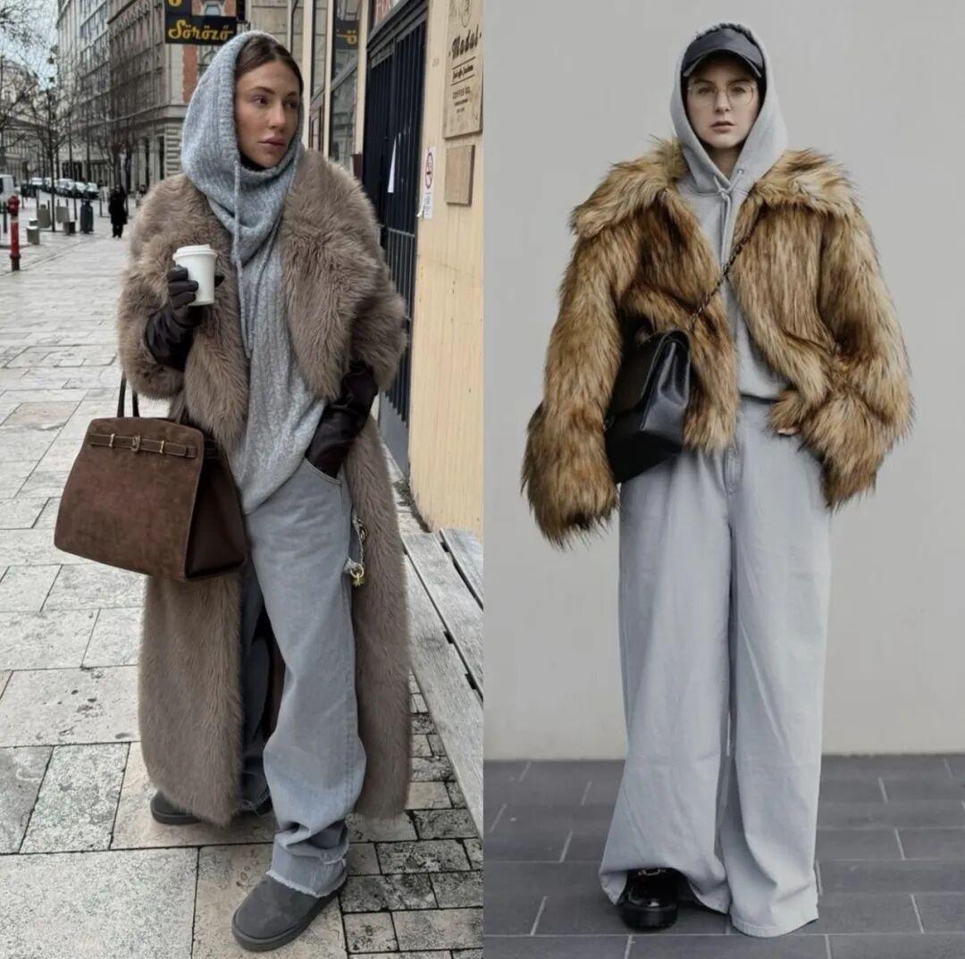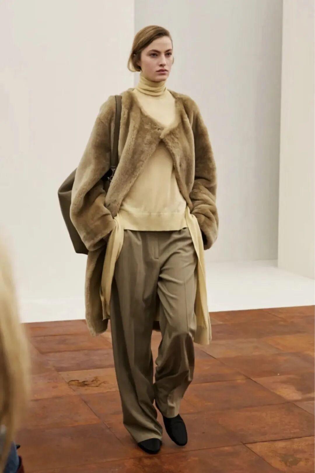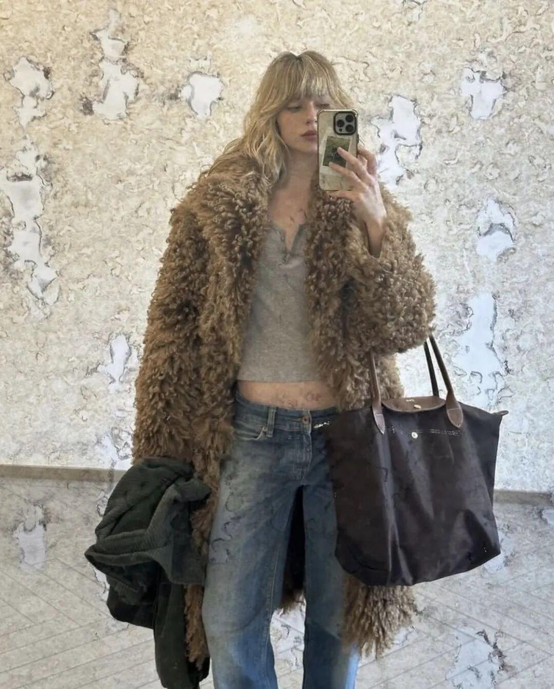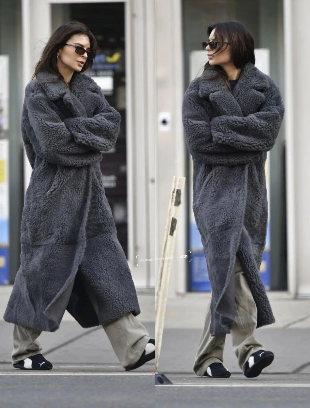 如果說泰迪熊外套是“可愛與酷”的平衡,那長款環保皮草則是“氣場與溫度”的化身。它不張揚,卻自帶距離感。與傳統皮草不同,如今的環保皮草(Faux Fur)不僅輕盈親膚,更代表着一種新奢華主義——既保留了質地的豐盈,又符合可持續時尚的價值觀。