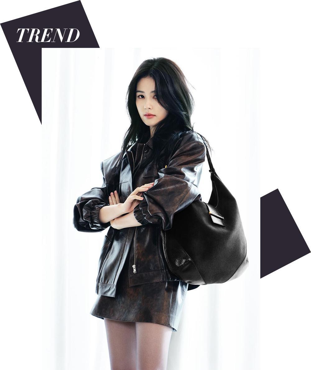 即使是基本款,只要寬鬆的剪裁及中性色調就可以打造出靜酷風格,爲整體搭配奠定沉穩的基調。張予曦這身造型從外套到長褲,每一處都暗藏剪裁的巧思。上寬下窄的皮夾克搭配抽繩袖口與衣襬,颯爽中透出復古氣息。寬鬆牛仔褲憑藉利落褲線勾勒隨性的身姿,整體既個性十足,又不失灑脫風格。