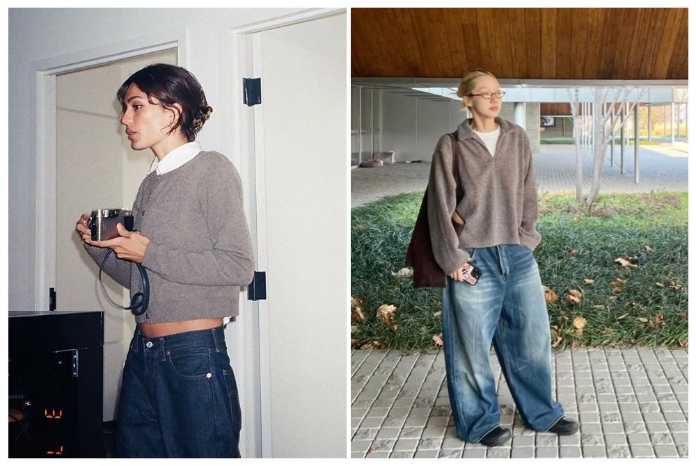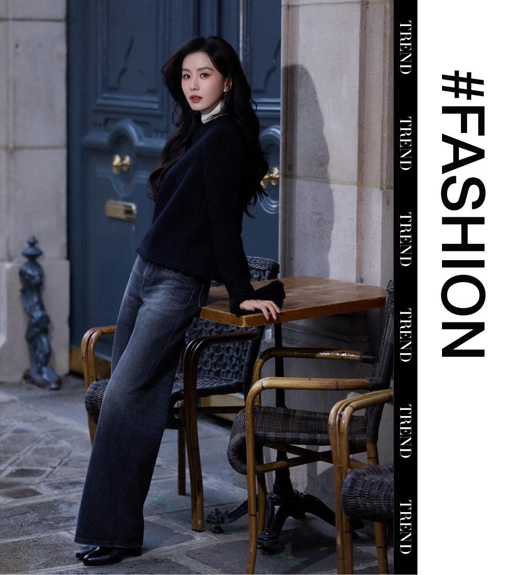 灰色水洗牛仔材質兼具牛仔的休閒感與灰色的冷靜氣質,百搭且不張揚。在層次搭配時,可選擇內外長度不一的單品組合,通過色彩明暗與面料差異拉出視覺節奏,輕鬆營造靜酷輕風格。