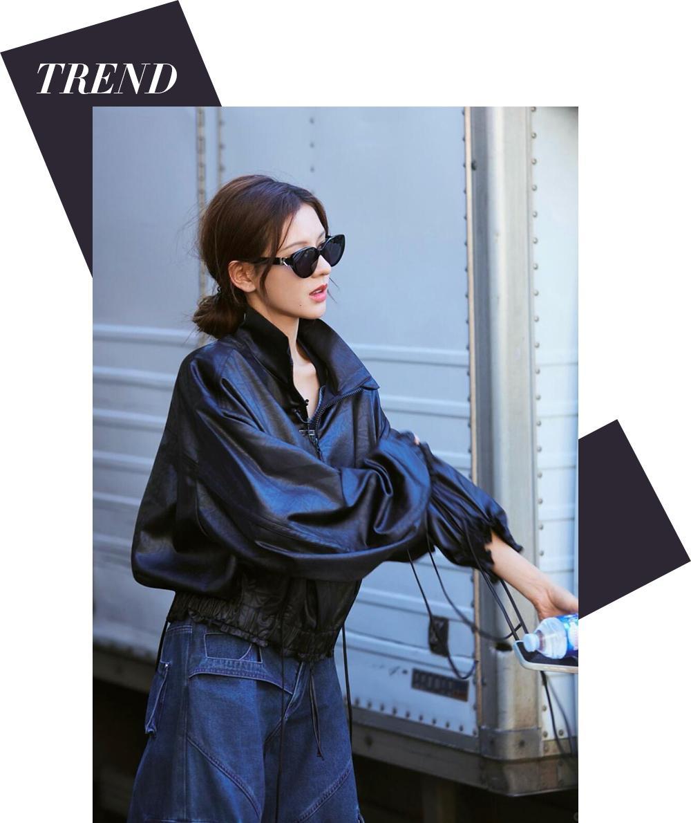 靜酷風格注重寬鬆卻不鬆垮的剪裁哲學,可以保持線條利落的同時傳遞慵懶而自信的氣質。白鹿這身造型就是靜酷美學的穿搭模板,夾克外套利落的剪裁強化力量感,與做舊的暗色調融合,既透出復古氣息,又通過細節保有幾分斯文酷雅的氣質。
