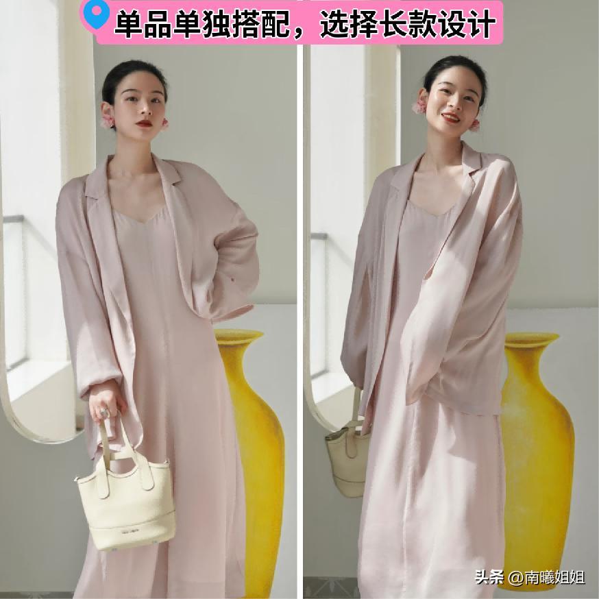 藕粉色系在進行搭配的時候,如果是單獨運用的話,那麼就推薦大家這一系列的單品可以優選長款的裙裝以及像長款的大衣或者是風衣這一類,整體搭配給人的感覺會更加的穩定一些,而且大面積將自己的身材狀態都包裹住的話,利落以及簡約的效應也會更明顯,越是這種偏淺色調的色系越要這樣進行搭配運用。
