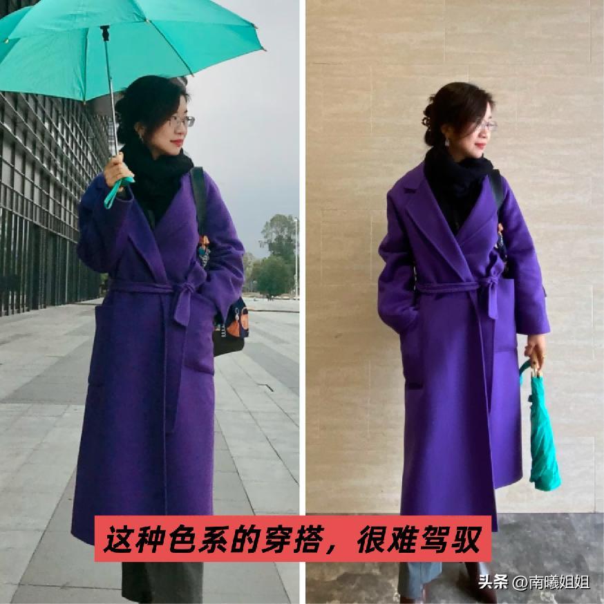 第2類非常不推薦大家進行運用的,就是飽和度過高的,像藏藍色以及深紫色這一類色調,但是這一類顏色的運用在上了年紀的女性羣體當中還是很高頻率的。自己認爲穿起來的效果是非常具有高級感的,但實則給人的感覺真的是很難駕馭,又有一種非常明顯的突兀感,對於肌膚的狀態也似乎沒有任何的優勢可言。