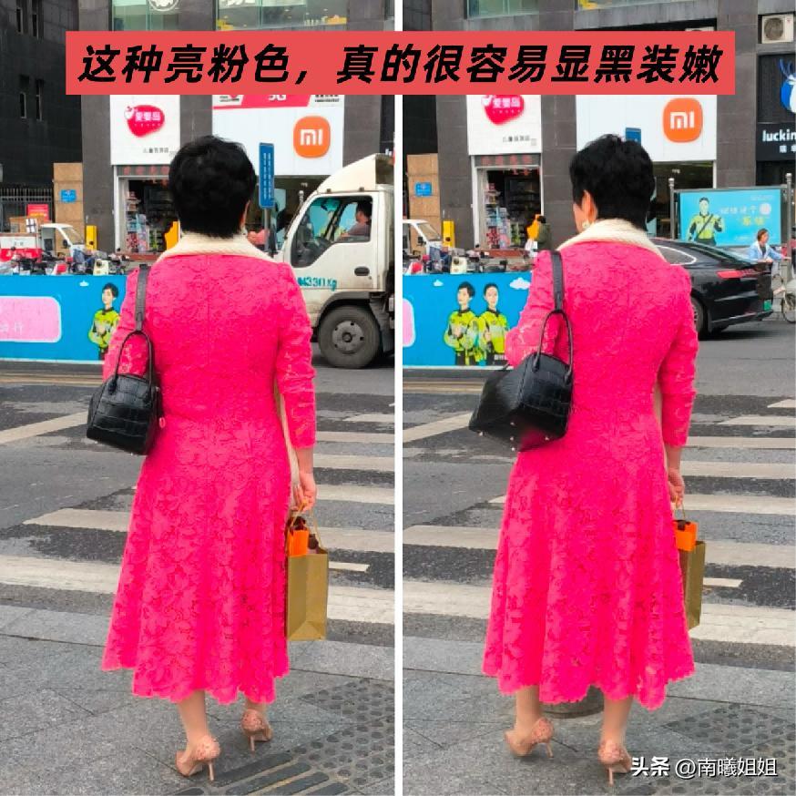 像非常明顯的亮粉色或者是亮黃色這一類明度過高的色系,其實對於任何一個年齡階段的女性來說,都建議大家不要去輕易的進行嘗試,年輕的時候我們還可以將其穿出一定的亮點和時髦感,但是如果到了五六十歲這個年齡階段的話還要搭配這樣的顏色,不僅很容易顯黑,而且也給人一種非常不得體不穩重,沒有品味的效果。