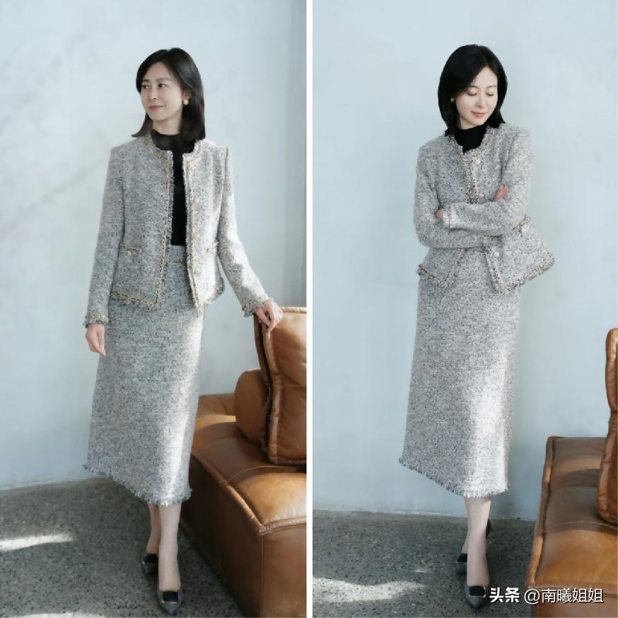 像黑色和灰色這樣的基礎型單品相信對於絕大部分中年階段的女性來說,一定是很高品質的搭配吧,尤其是到了秋冬季節的時候,好像用黑色或者灰色這樣的系列單品將自己全身都包裹起來,體現着一定的穩定性,但其實這樣的穿搭給人的感覺真的是非常的顯老,而且很容易凸顯土氣效果。