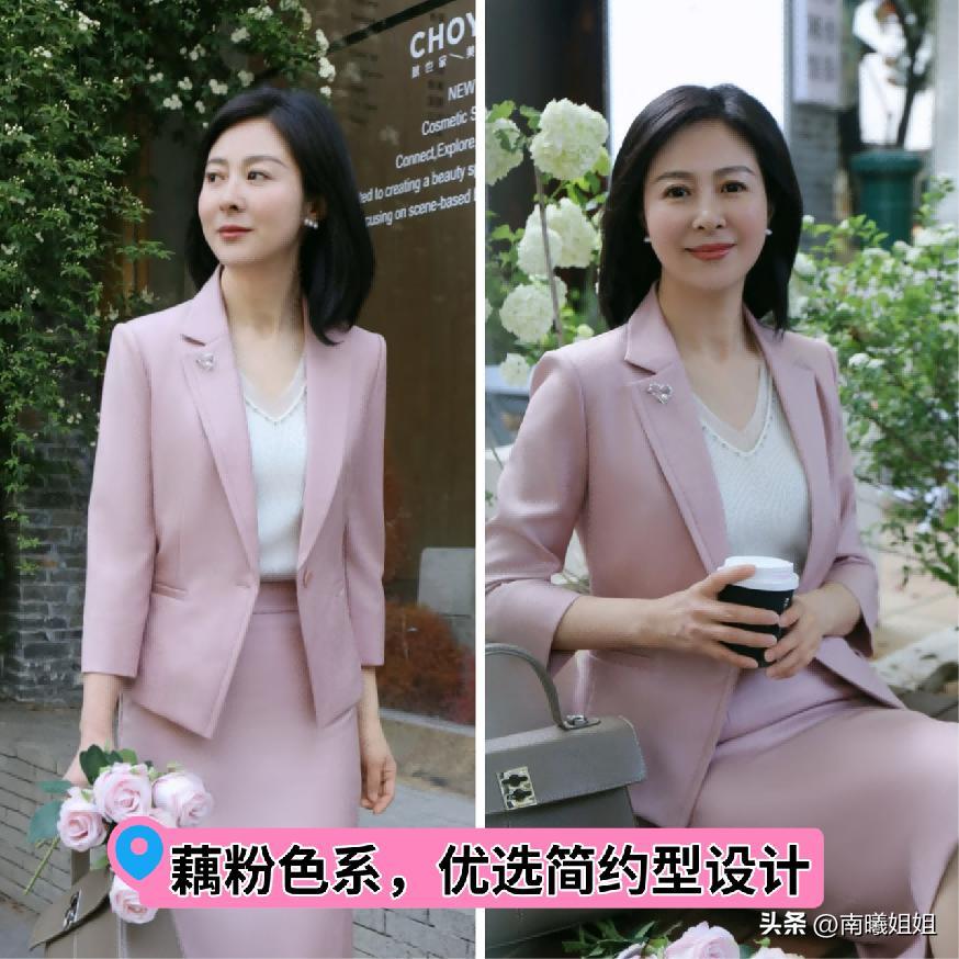 首先要推薦給大家,先來運用的色系就是真的很顯年輕的藕粉色這一類的顏色雖然是屬於粉色系,但其實灰度會比較偏高一些,所以整體的穩定度是很明顯的,襯托出來的效果就是屬於優雅又溫柔又明顯年輕一些,所以如果想要在約會的場合又或者是出行的時候讓自己顯得更年輕的話,那麼灰粉色是很好的優選。