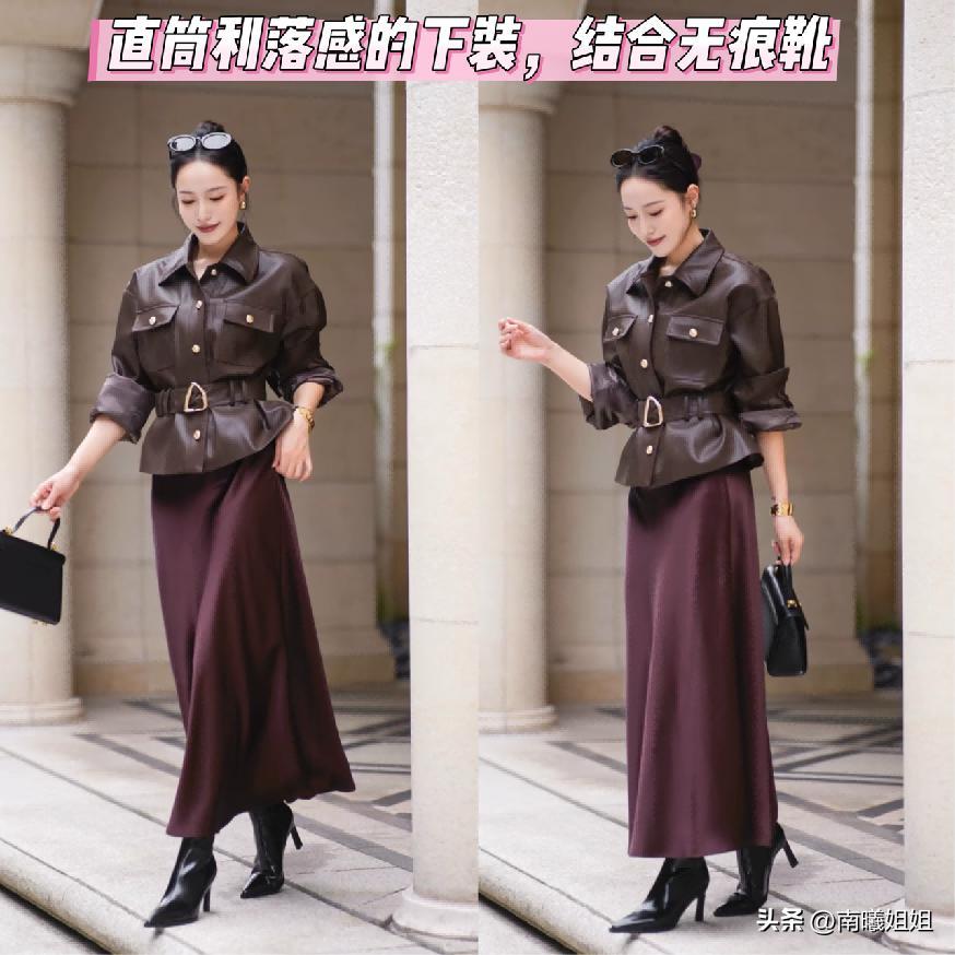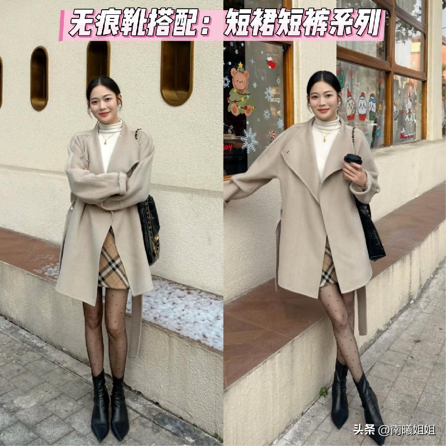 也非常強烈的推薦大家運用的下半身單品和你的無痕靴最好是屬於同色系組合爲主,尤其是你的身材狀態是屬於五五分或者是腿部狀態,它也比較短一些,那麼這樣的情況下同色系在視覺上的縱向拉長,拉伸的感覺是非常明顯的,可以很好的拉長腿型的狀態,彰顯大長腿的姿態。