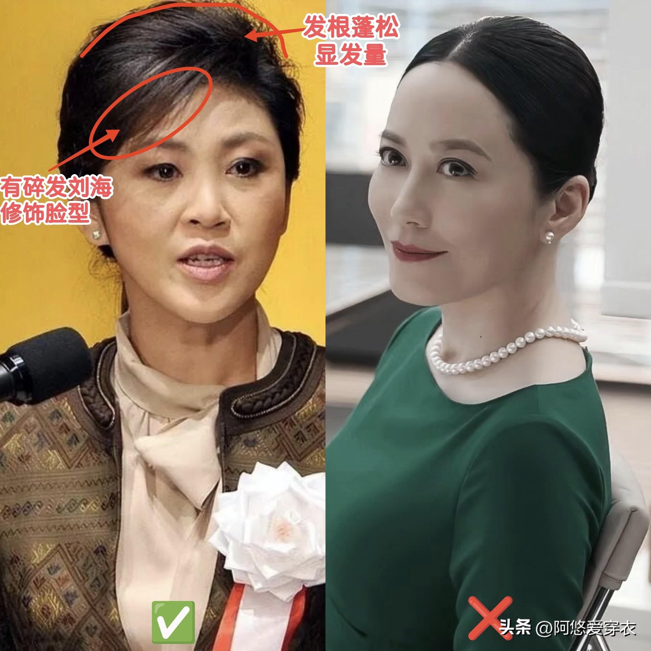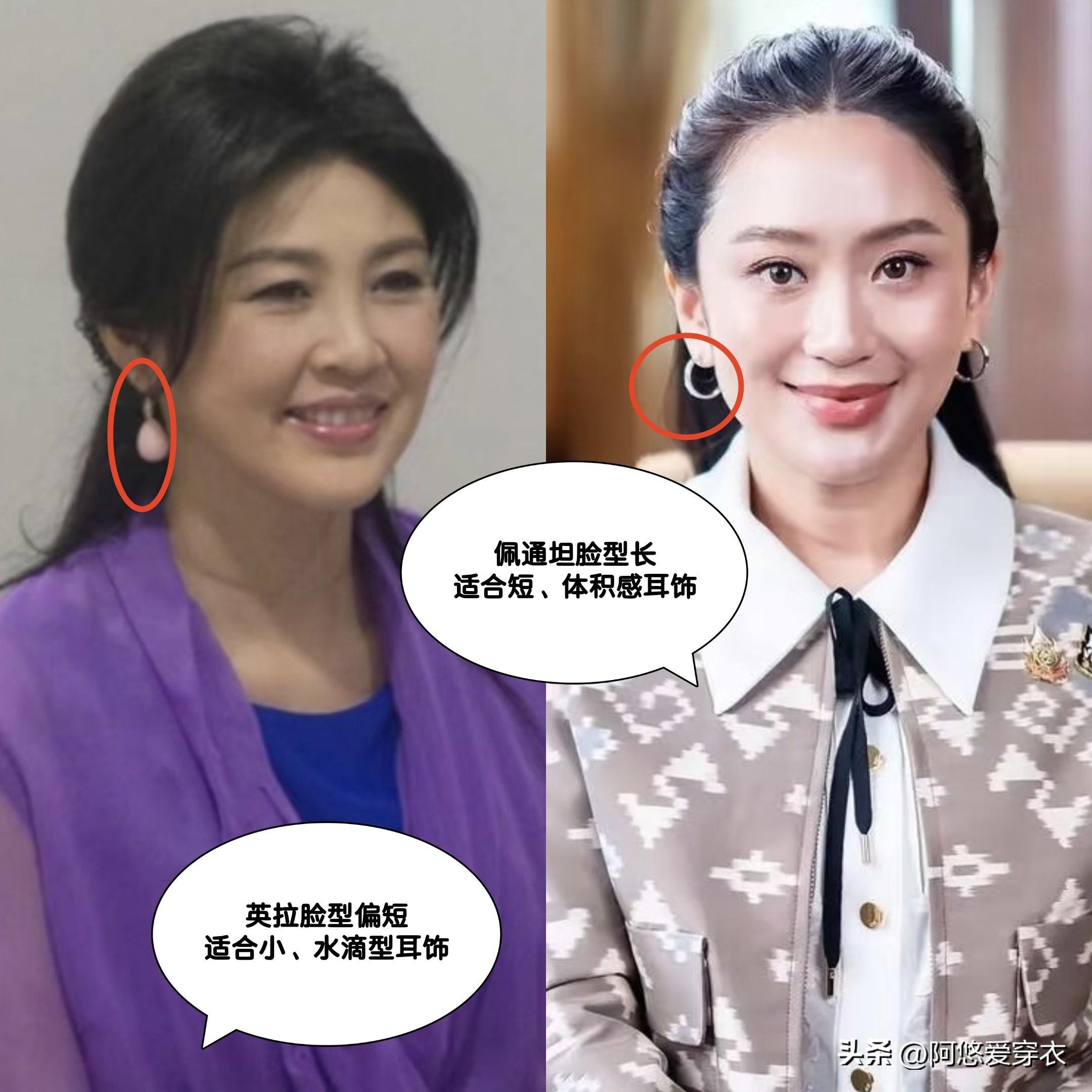 而她的侄女,也就是泰國第31任總理佩通坦的臉型就要瘦長一些,會更適合戴有橫向擴張感或體積感的耳飾。