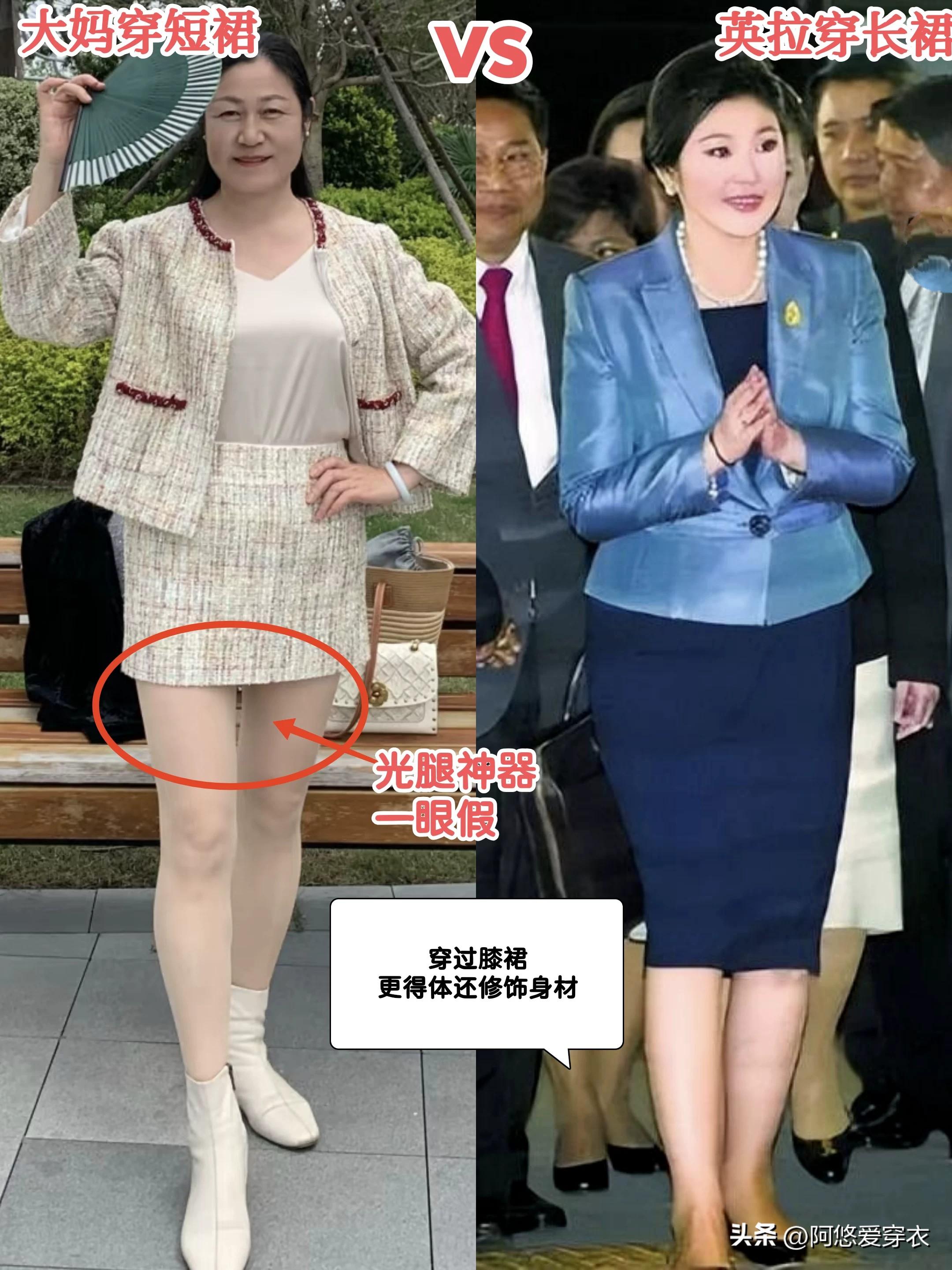 我一開始也沒想到,英拉穿衣服竟然這麼簡單,就是多穿過膝裙!如果你不知道中年該穿什麼,我告訴大家一個方法——穿那種帶有一定正式感的套裙就行。