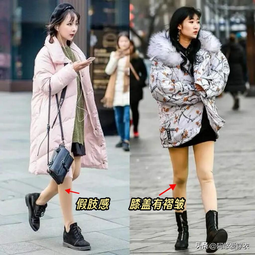 上半身的保暖工作做好了,下半身咱們就可以放心地穿薄一點了,但也要注意,千萬不能隨便跟風穿光腿神器,很多人以爲穿光腿神器別人看不出來你穿了打底褲,但現實生活中真的很醜,主要是光腿神器很難做到和真的露腿一樣的視覺效果,穿起來容易產生假肢的感覺,還會在行動的時候產生褶皺感,超級難看。