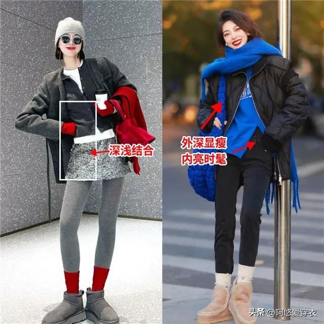 再看上厚下薄的搭配,能減輕下半身的厚重感,修飾雙腿的線條和身材比例,讓整個人的身材看着更好。