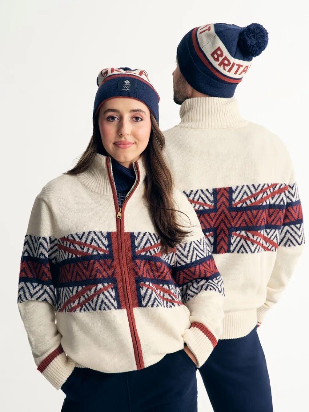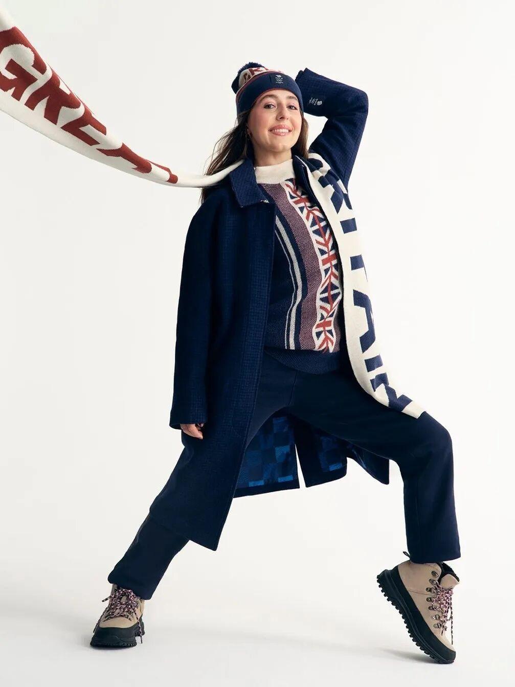 冬日純白羊毛大衣+國旗嵌花毛衣爲主,