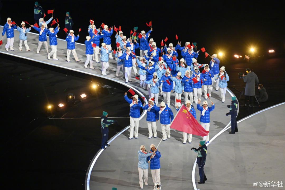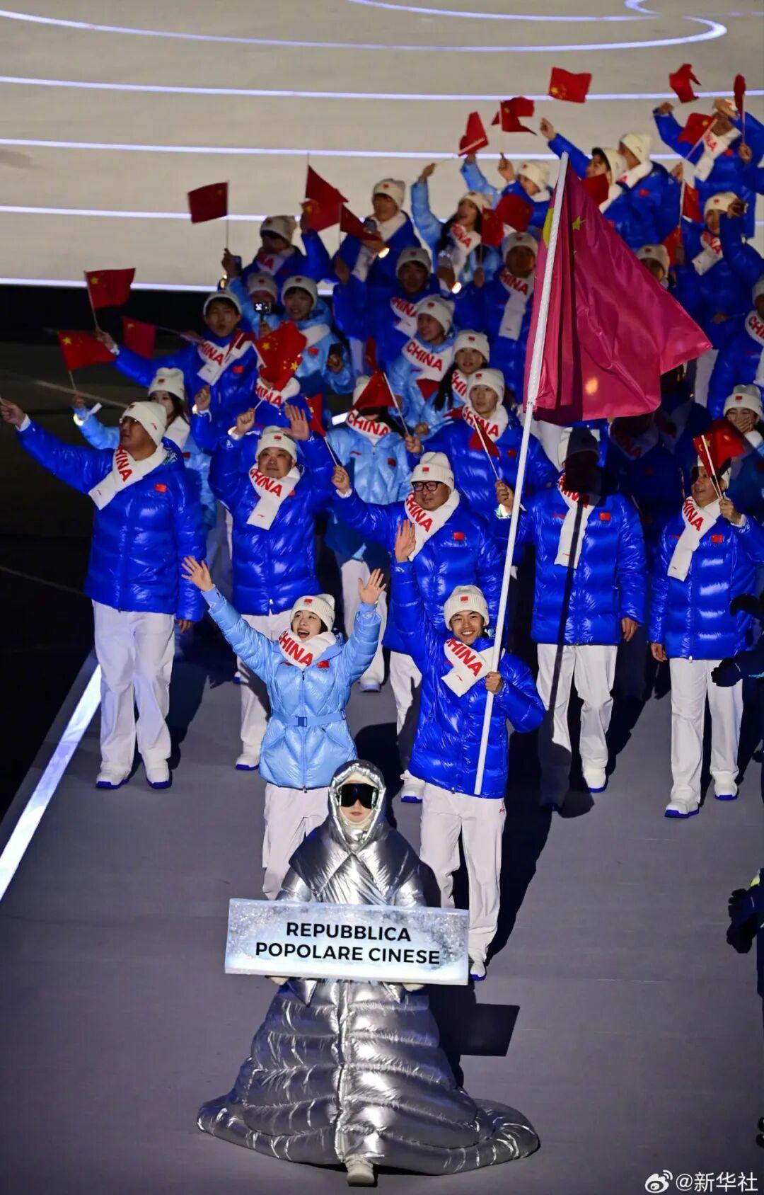 閉幕式採用紅/白/藍色塊拼接羽絨服,
