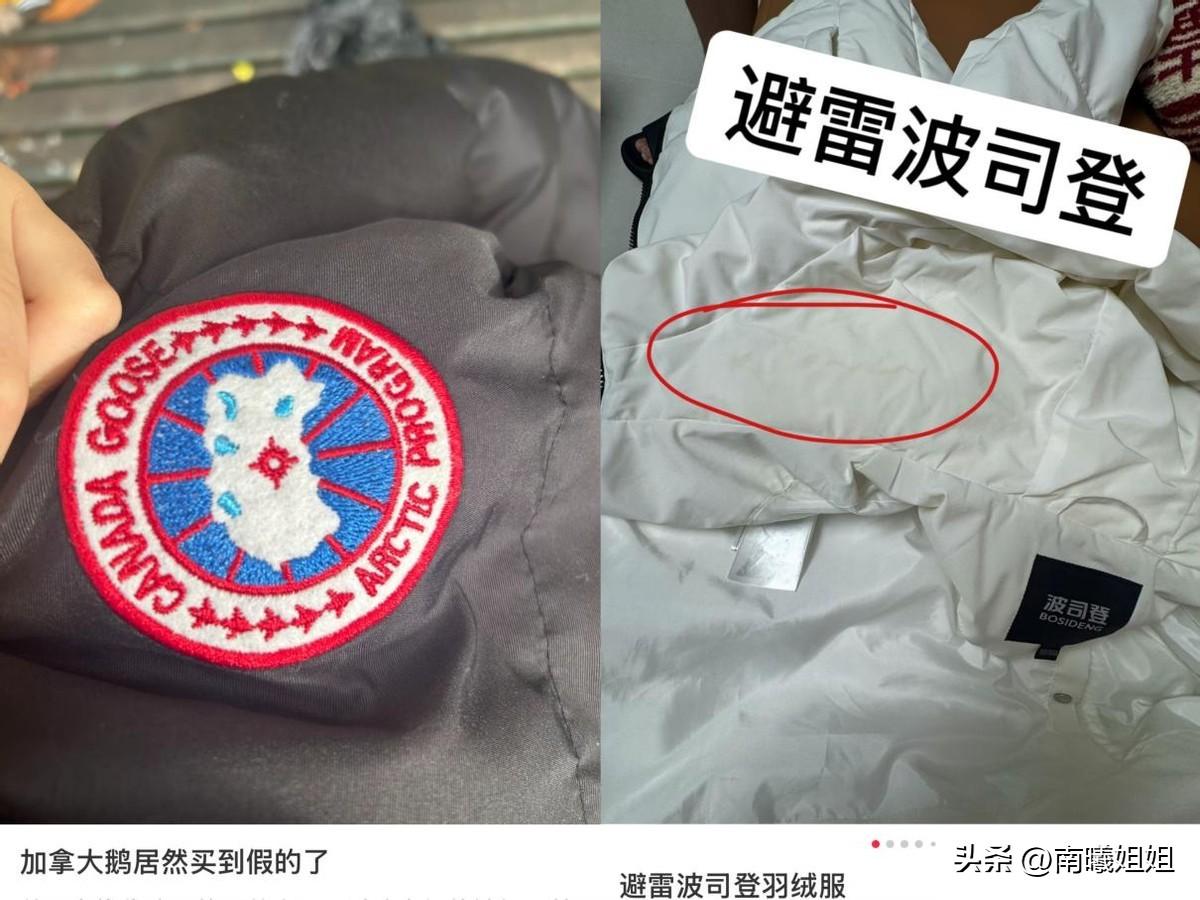 隨着溢價嚴重,自然會被假貨商盯上,從而導致很多消費者買到假的加拿大鵝、波司登,質量看憂不說,穿在身上還“一眼假”,分分鐘拉低檔次。