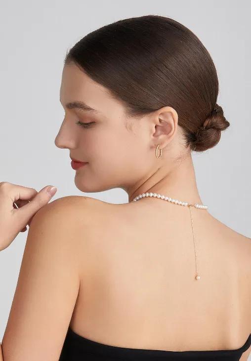 5-6mm珍珠大小適中,比例得當,並且擁有絕美的光澤感,看起來非常高級。它同時也是一條“寶藏項鍊”,除了可以滿足你對項鍊的基本需求,還能實現自由“變身”——每一串珍珠項鍊的兩端,都是一個精緻的活釦,也就是說,項鍊可以自由摘取。