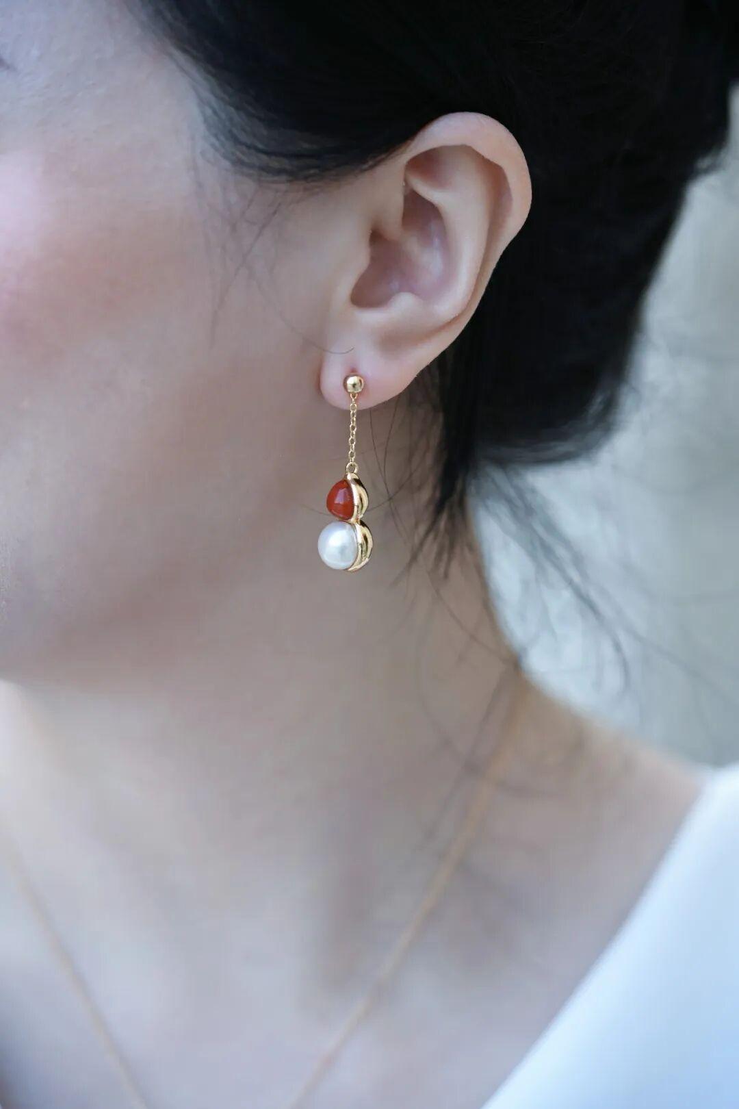 或者搭配1cm的短耳線,更加利落精緻。如果想單獨佩戴耳線上的南紅耳釘,也未嘗不可,就看你的駕馭方式啦~