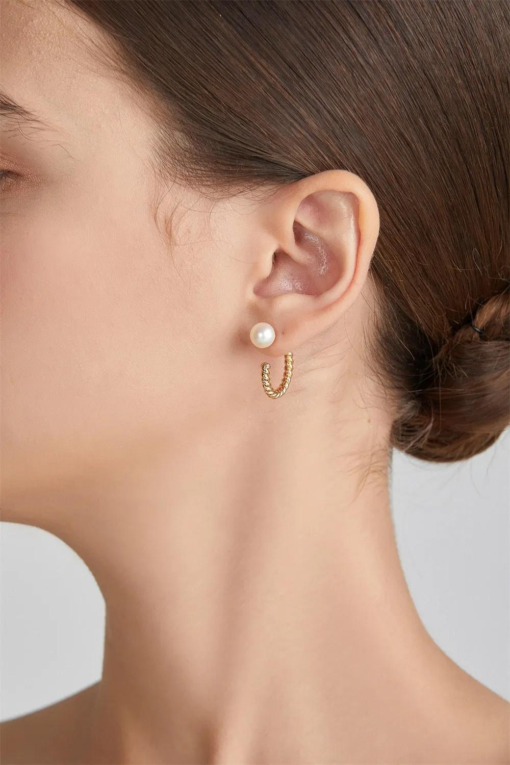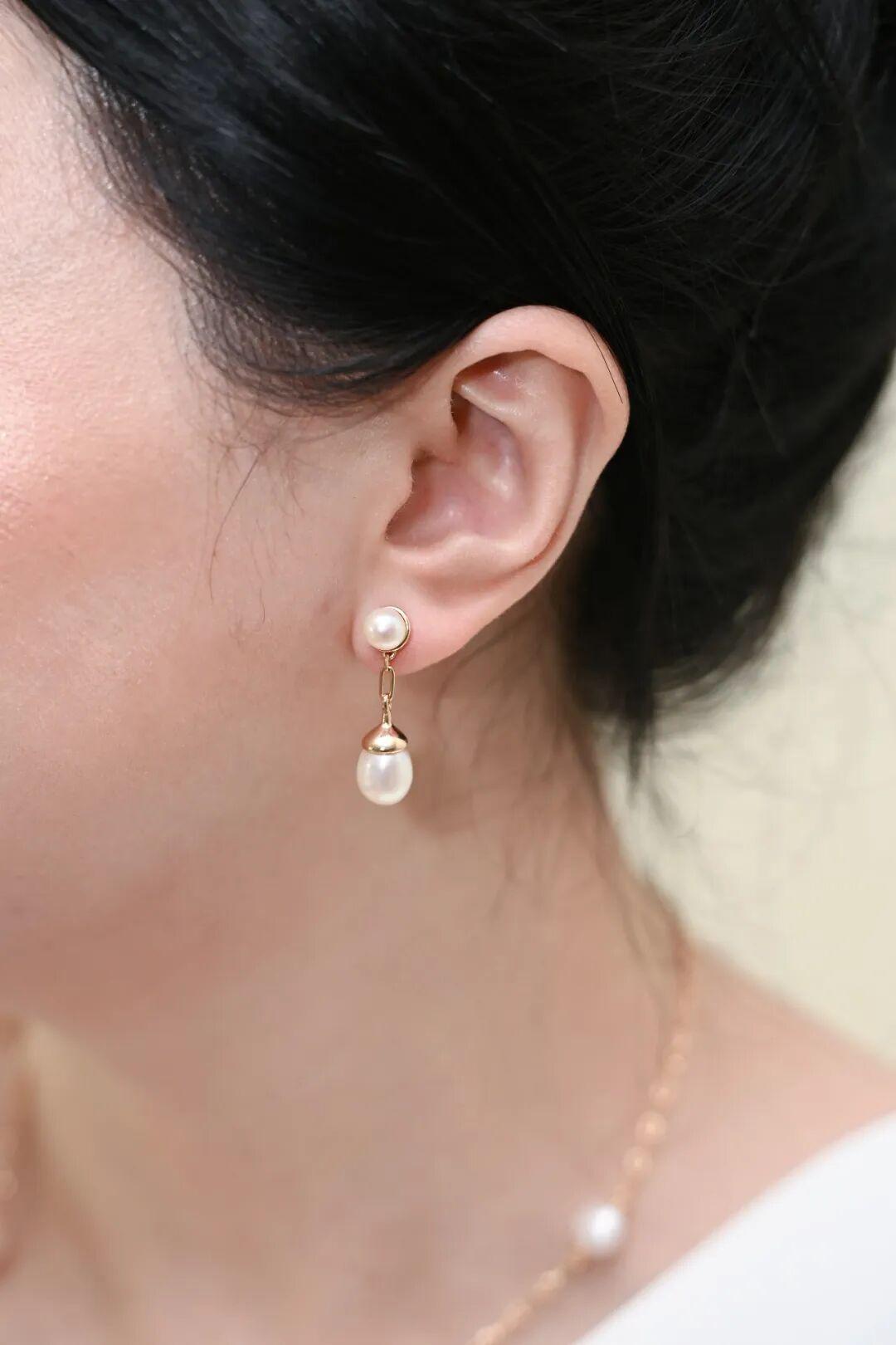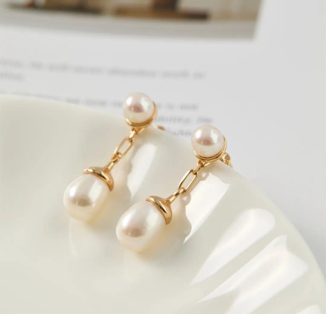 頂部6mm的圓珠耳釘簡約而不失優雅,與8-9mm水滴形狀的珍珠耳墜相得益彰,就像植物葉片上的露珠一樣,折射出清晨第一縷陽光。