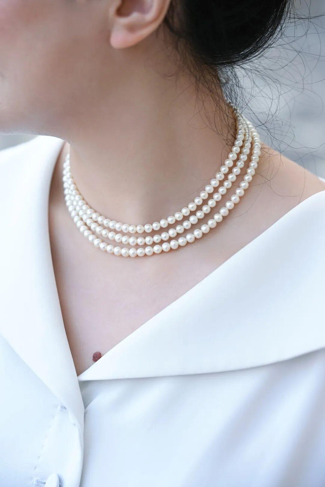 平時佩戴,PM還有不少長期主義珍珠也是不錯的選擇。三層鏈曾是好萊塢女神們的最愛,英國女王戴了一輩子,見證了她從優雅的少女變爲和藹的老人,不變的則是從容和風度,別提有多經典。