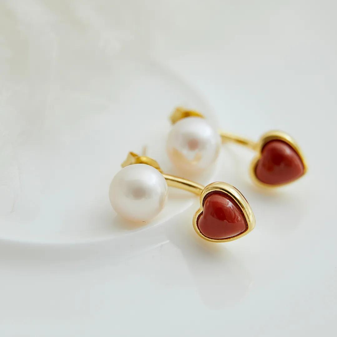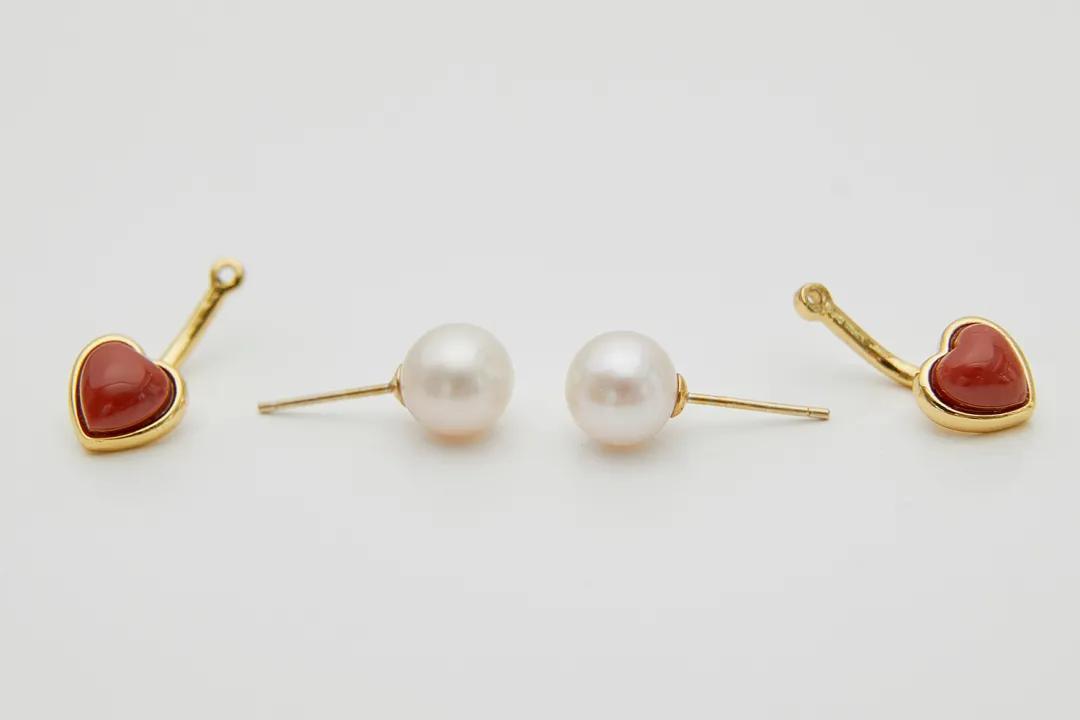 搭配同爲南紅系列的珍珠項鍊,一套佩戴更顯精緻。也可以卸掉心形掛墜,配上耳堵,當做珍珠耳釘單獨佩戴,兩種佩戴法都很實用。