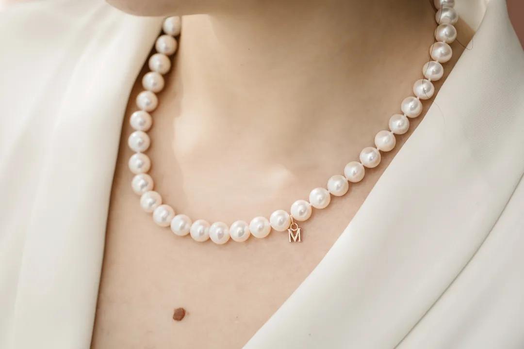玫瑰金M標牌的小點綴,不僅象徵着珍珠陪伴的每時每刻,也讓項鍊顯得精緻無比,剛剛好又不搶鏡,也一下子提升了辨識度。