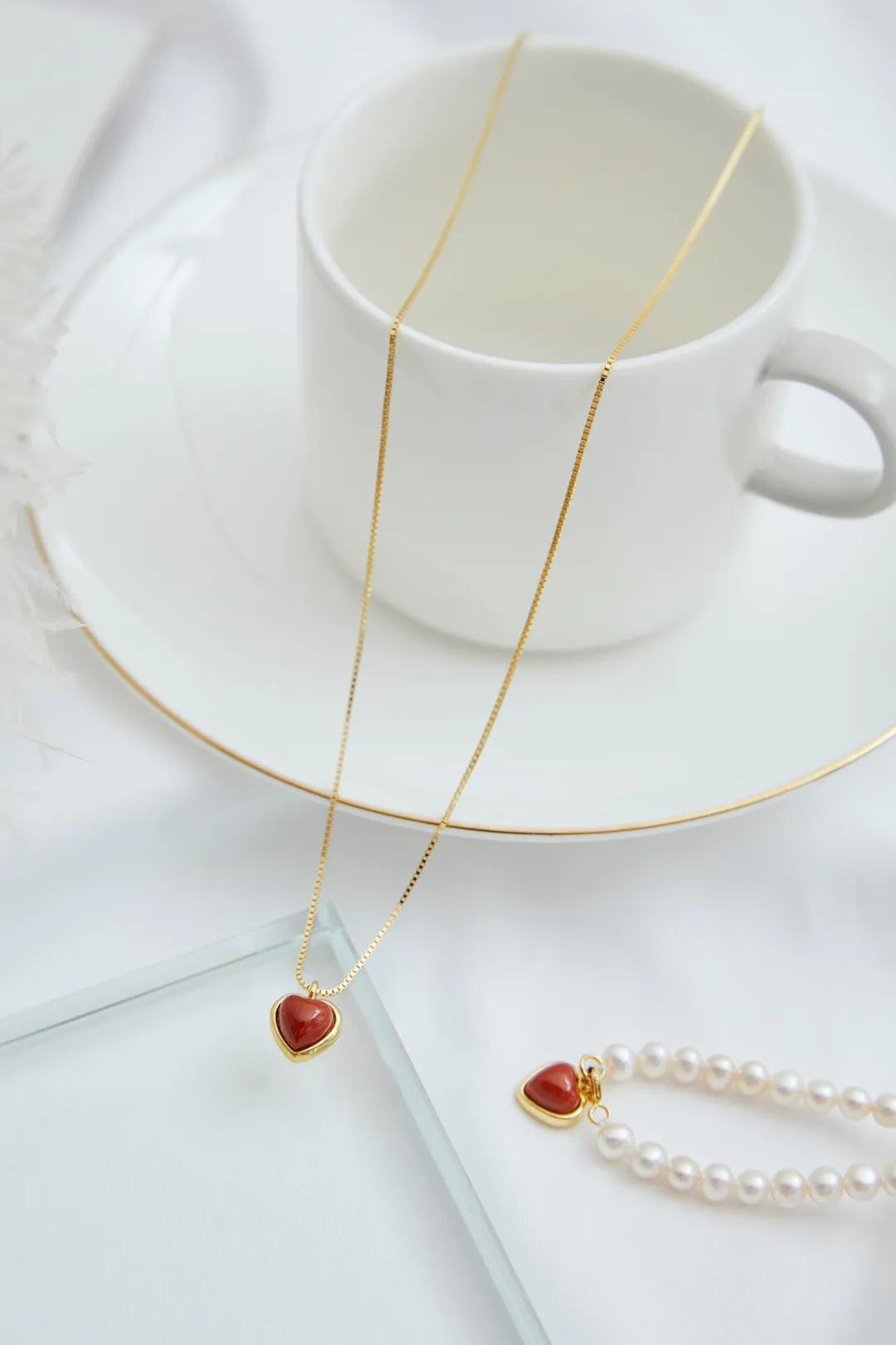 俏皮的Little Red Heart南紅小紅心珍珠項鍊,也很適合過年戴。